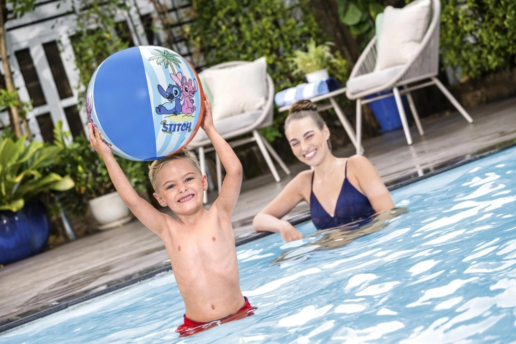 Vrolijke kleuren, palmen en de geliefde STITCH geven water- en buitenspellen een speels karakter en uitstekende zichtbaarheid.