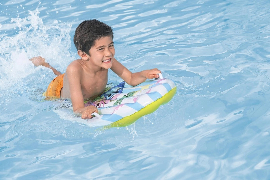 Meerdere opblaasbare kamers verhogen het drijfvermogen en de stabiliteit, zodat kinderen zich veilig voelen, ook bij kleine golfjes.