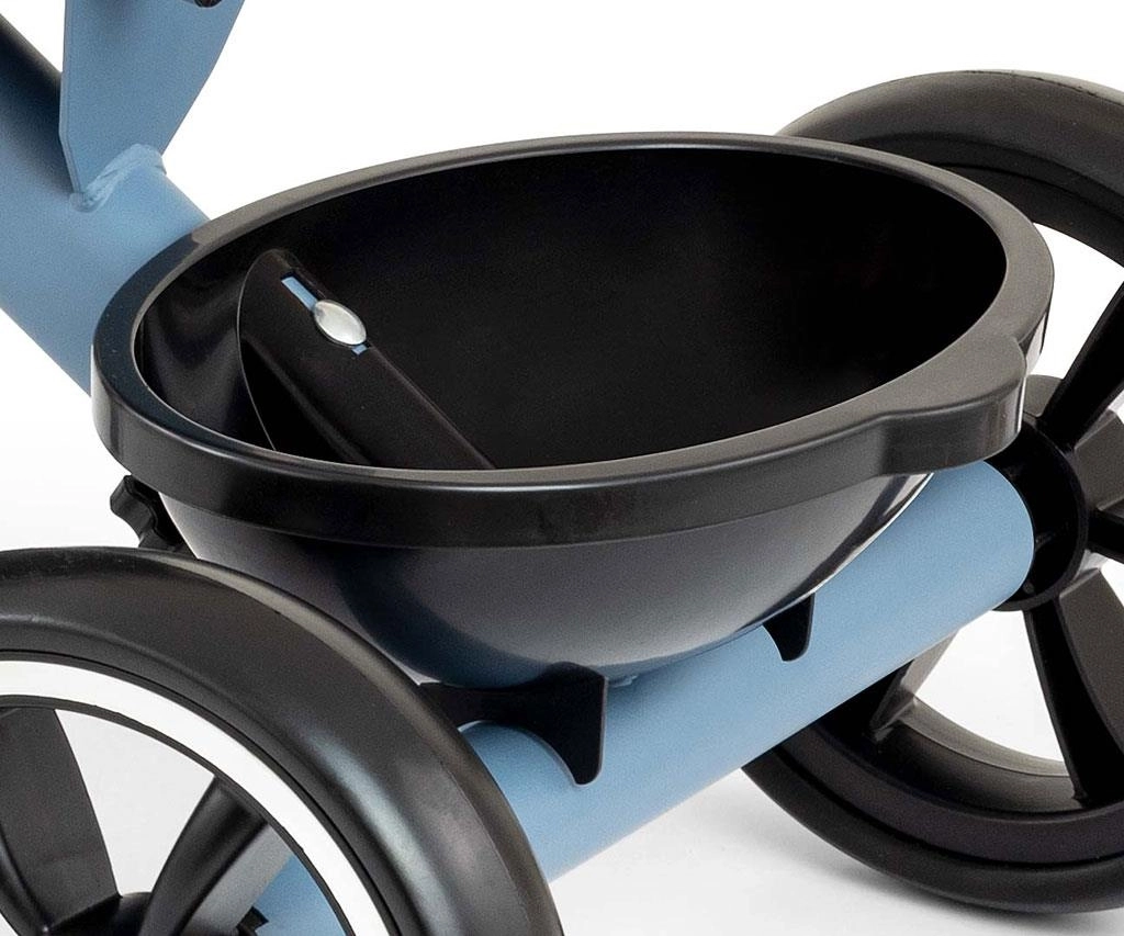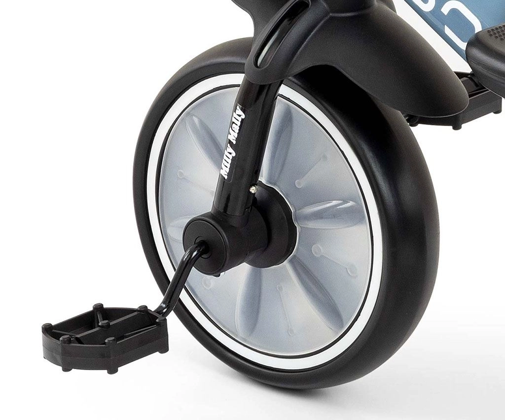Het doordachte ontwerp met afneembare pedalen maakt gebruik als zowel loopfiets als klassieke driewieler mogelijk. Bescherming van het voorwiel voorkomt dat voetjes vast komen te zitten, antislip handgrepen met uiteinden verhogen de veiligheid van de grip en het spatbord beschermt tegen vuil. Twee mandjes – voor en achter – bieden ruimte voor speelgoed en accessoires.