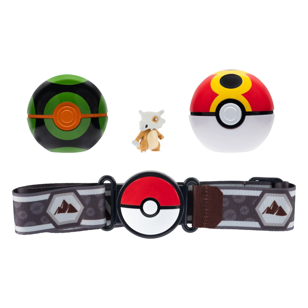 - Complete traineruitrusting: riem, 2 Pokéballs en Cubone-figuur