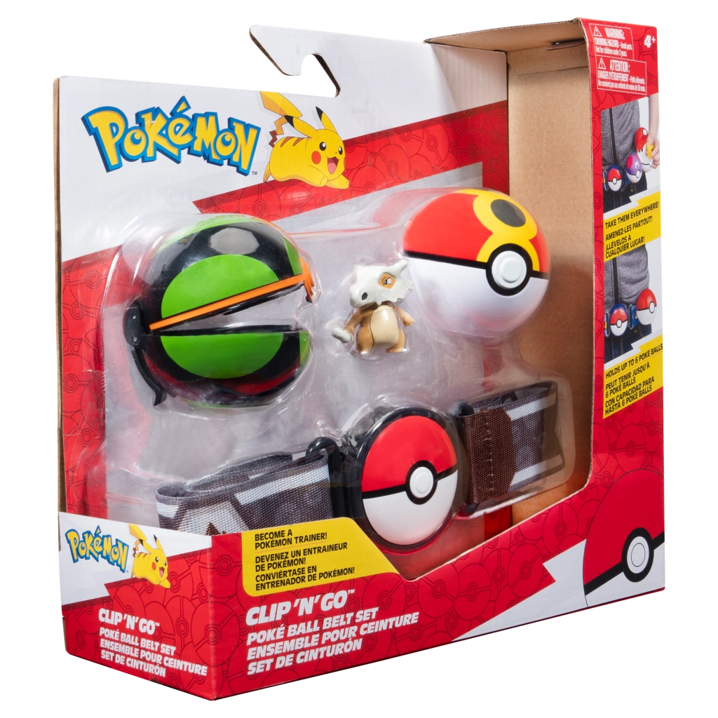 Rust je uit als een echte trainer met de Pokémon Clip ’N’ Go-speelset – een riem met twee Pokéballs en een schattige Cubone-figuur. Dankzij de verstelbare riem en clips kunnen kinderen hun Pokéballs gemakkelijk aan de taille bevestigen, op avontuur gaan en genieten van creatieve rollenspellen, snelle gevechten en het meenemen van figuren waar dan ook.