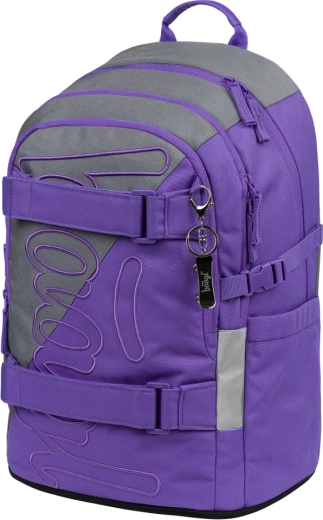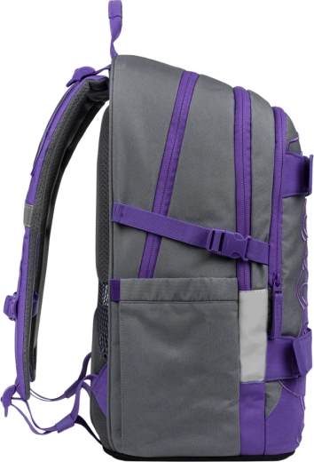 Drie afzonderlijk afsluitbare vakken zorgen voor een overzichtelijke opslag van schoolspullen. De interne organizer en het gevoerde vak voor een 15″ laptop of tablet beschermen elektronica, de zijvakken bieden plaats aan een drinkfles. Voorste compressie-/bevestigingsriemen zetten veilig een skateboard of sweatshirt vast.