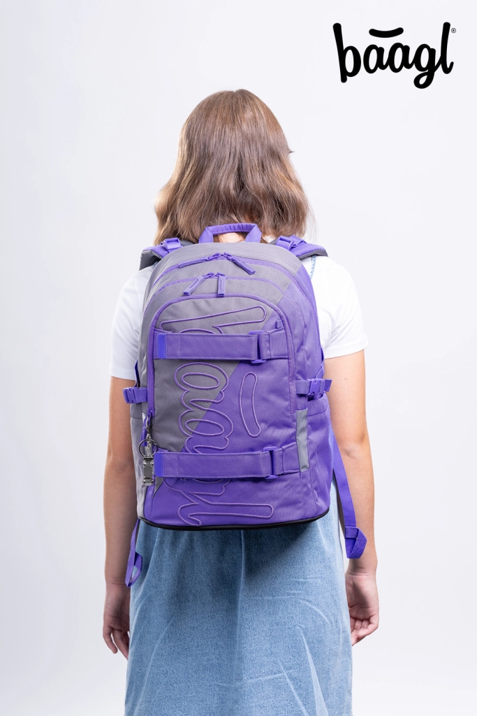 Lichte en duurzame schoolrugzak Baagl Skate Dual GRS, ideaal vanaf groep 5/6. Biedt anatomisch gevormde rug, 3 aparte vakken, een gevoerd vak voor een 15″ laptop, compressie- en borstband en reflecterende elementen voor veiligheid. Gemaakt van gerecycled, waterafstotend materiaal met GRS-certificering en voorzien van YKK-ritsen.