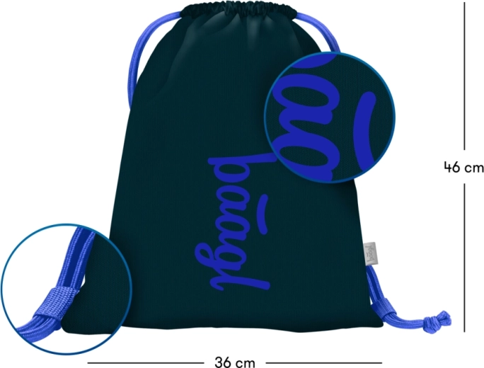 Praktische en stijlvolle zak voor schoenen en kleinigheden in blauw met het BAAGL-logo. Gemaakt van stevig, afwasbaar materiaal, met treksluiting met duurzame koorden voor comfortabel dragen op de rug. De certificering Global Recycled Standard (GRS) bevestigt milieuvriendelijkheid en hoge sociale en ecologische standaarden.
