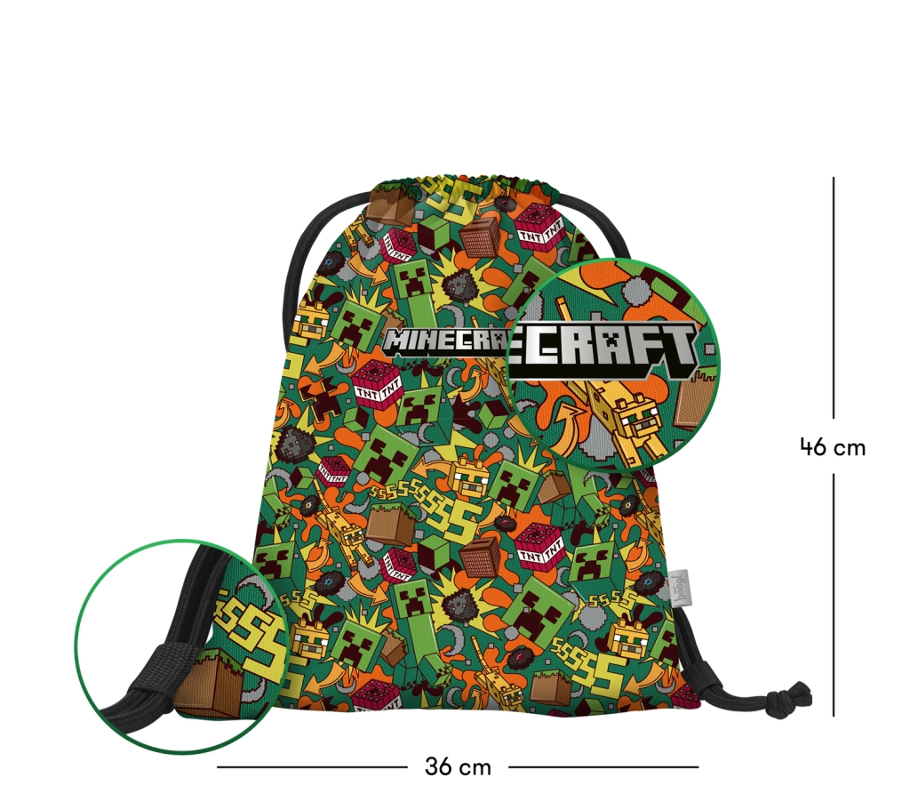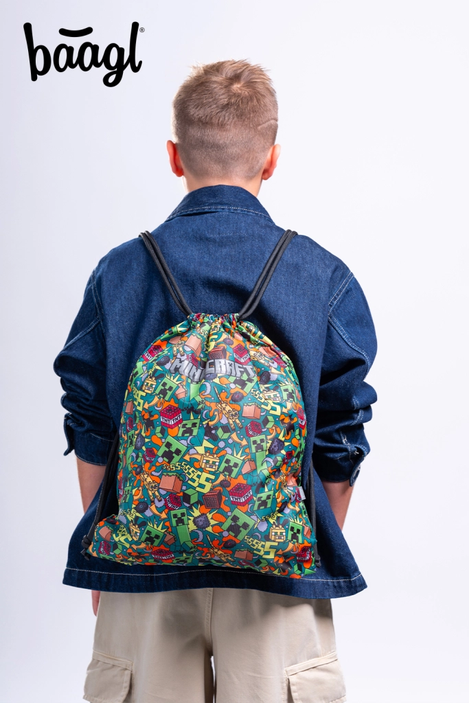 Praktische BAAGL-zak met MINECRAFT Chaos-motief, ideaal voor schoenen, gymschoenen of kleine spullen voor de vrije tijd. Gemaakt van een stevig, afwasbaar materiaal en dankzij de sterk gevlochten koorden eenvoudig samen te trekken en comfortabel op de rug te dragen.