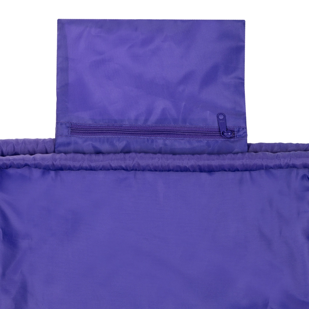 Stevige koorden zorgen voor snel sluiten van de tas en dienen tegelijk als schouderbanden om hem op de rug te dragen.