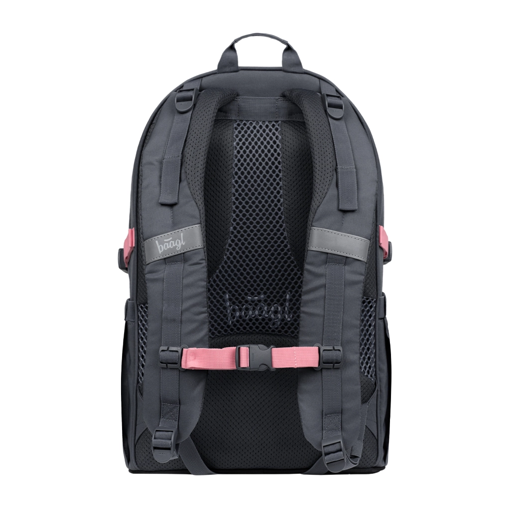 Complete school- en vrijetijdsuitrusting in een uniforme look. De BAAGL Core rugzak biedt ergonomie voor een gezonde rug, doordachte organisatie voor elke dag en duurzame materialen met GRS-certificering. De set wordt aangevuld met een etui, gymsack, heuptas en laptophoes – allemaal in de roze Core Logo-stijl.