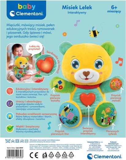 Ontdek het schattige vriendje voor de allerkleinsten – de interactieve teddybeer Lelek, die Pools spreekt en de vroege ontwikkeling spelenderwijs ondersteunt. De zachte pluche, het veilige design en de intuïtieve knoppen maken deze beer tot het perfecte speelgoed om de wereld te verkennen.
