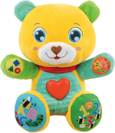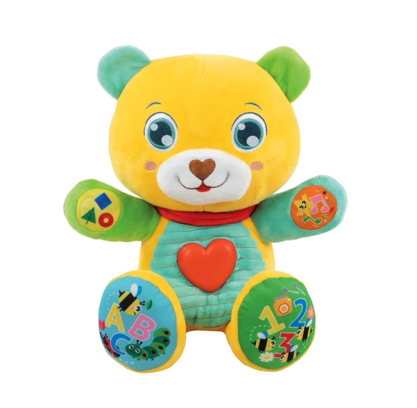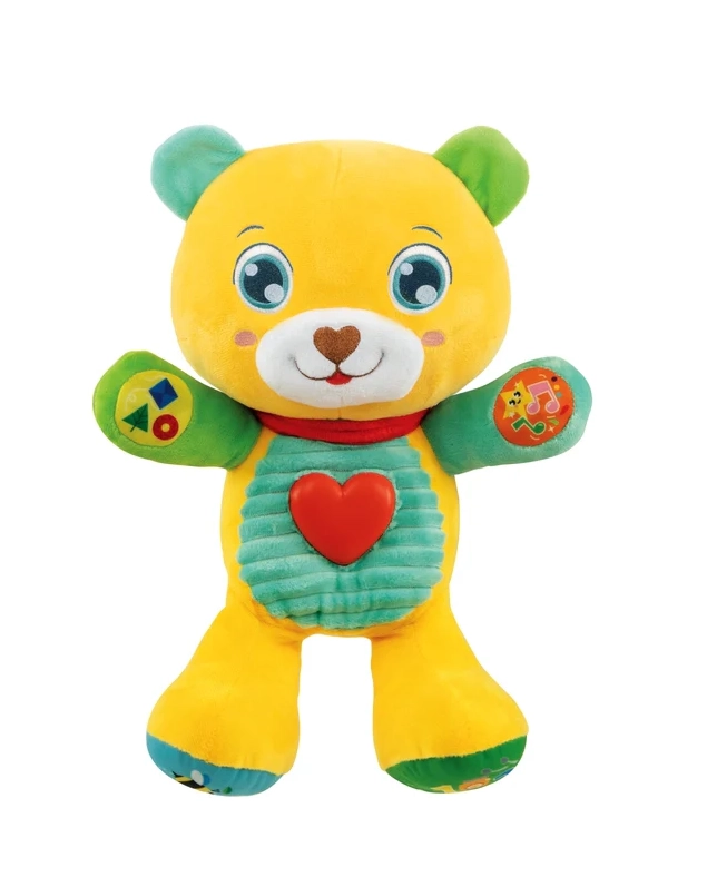 Dankzij 5 aanraakknoppen leert je kind letters, getallen, kleuren en vormen herkennen. Het stralende hartje licht op wanneer de beer praat of vrolijke liedjes en versjes zingt, wat de zintuiglijke stimulatie, het ritmegevoel en de fijne motoriek bevordert.