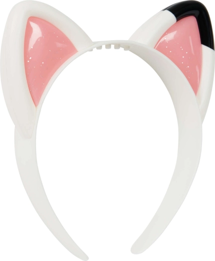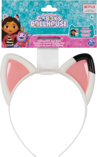 Betreed de fantasiewereld met de kattenoor-haarband uit de populaire serie GABBY’S DOLLHOUSE. De witte plastic haarband met roze glinsterende details kopieert precies de oortjes die Gabby draagt en ondersteunt creatieve spelletjes, kostuums en het dagelijks verfraaien van kapsels.