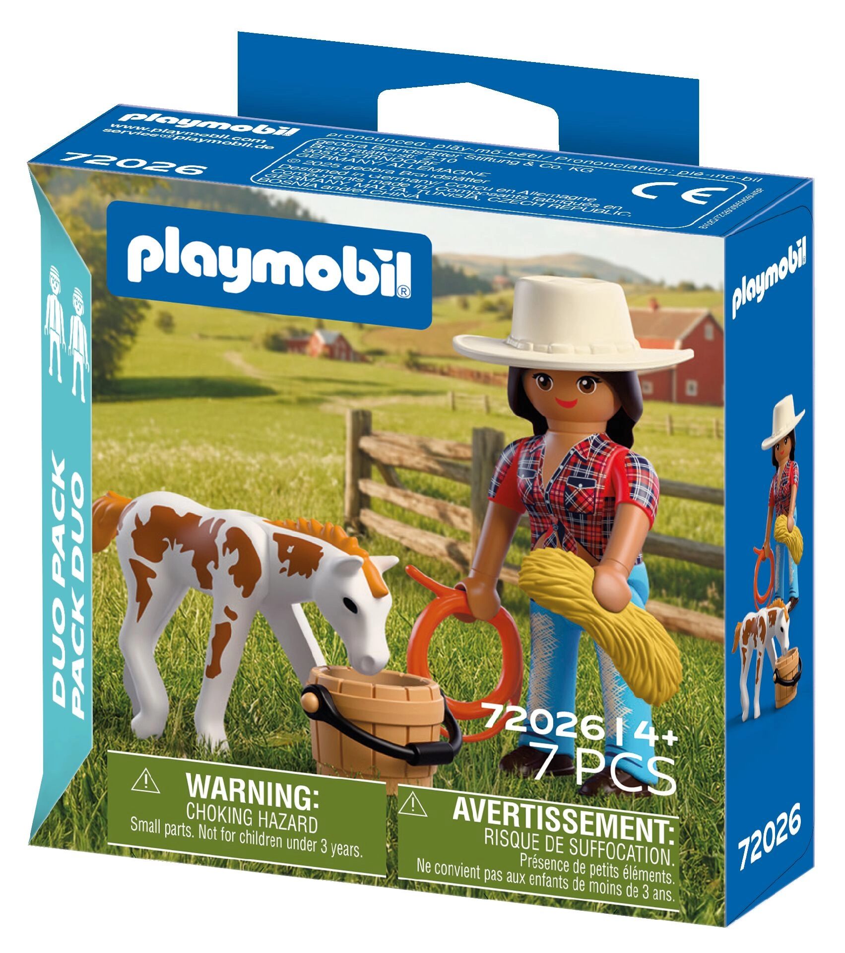 Deze compacte set uit de serie PLAYMOBIL Duo Pack bevat alles voor verhalen van de ranch: een dappere cowgirl die moet zorgen voor het jonge Appaloosa-veulen. Dankzij doordachte details en de meegeleverde accessoires kunnen kinderen hun eigen avonturen creëren en zowel de fijne motoriek als sociale vaardigheden trainen.