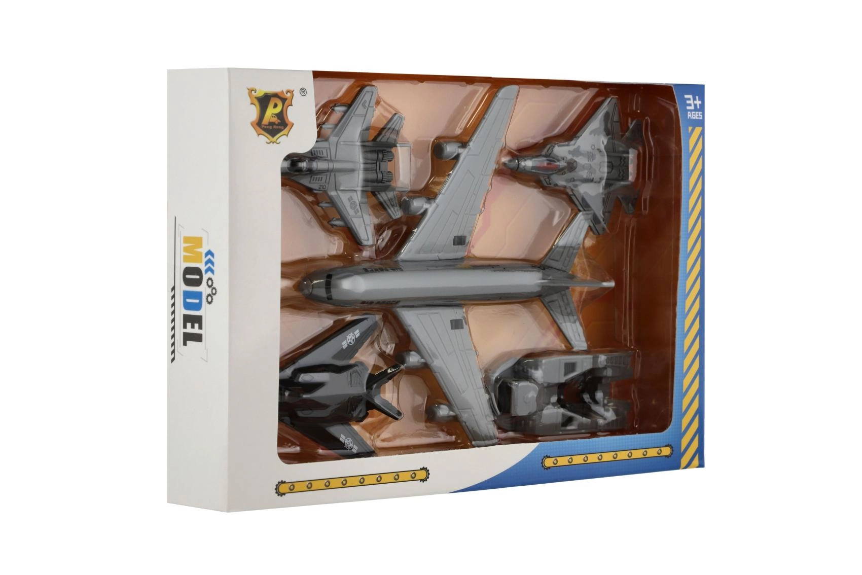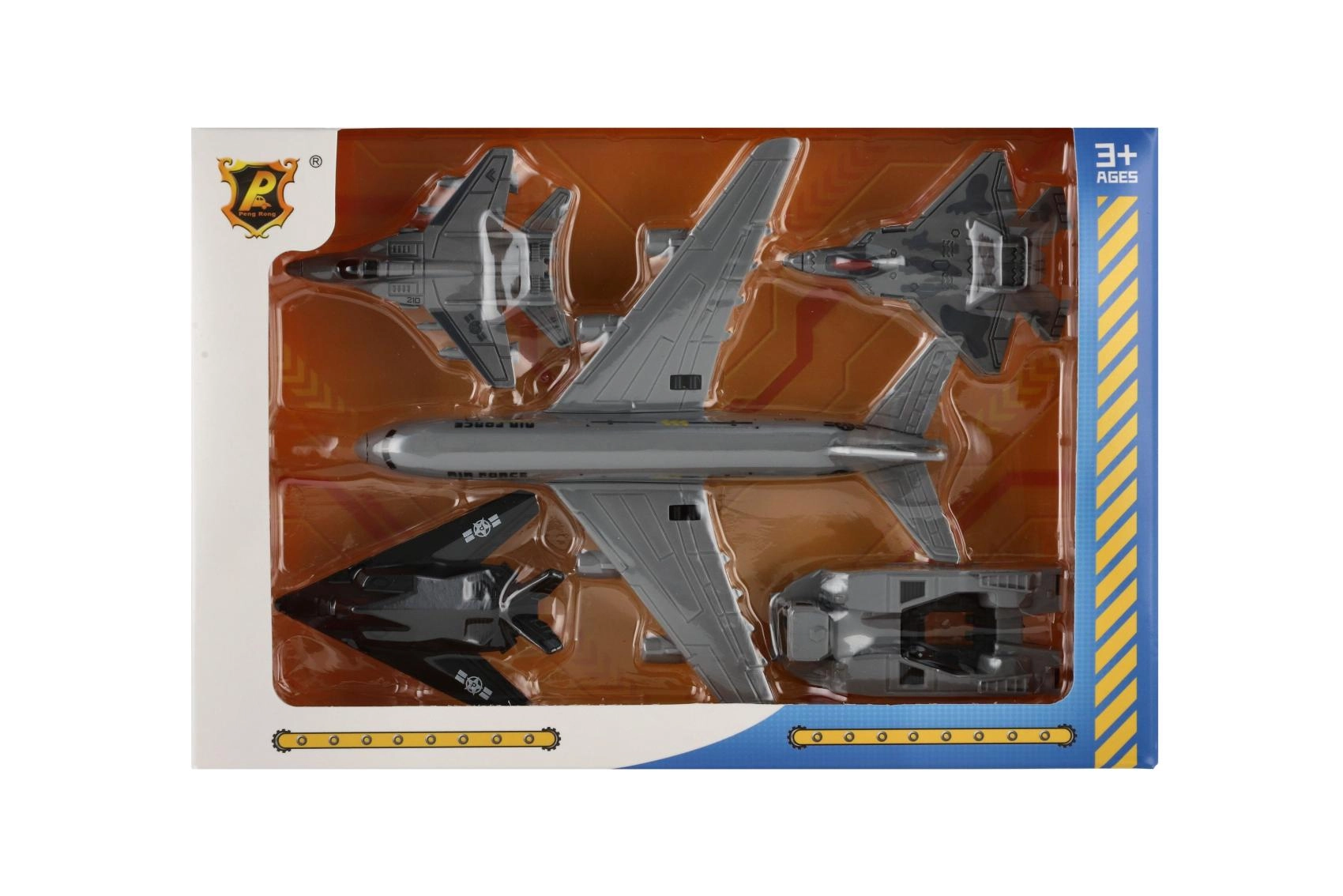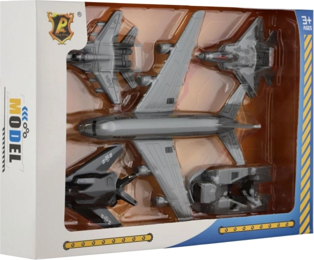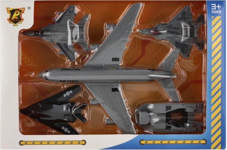 Deze complete set met vliegtuigen en begeleidende voertuigen is ideaal voor spannende luchtmissies en dagelijks spelen. Het hoofdtransportvliegtuig wordt aangevuld met drie jachtvliegtuigen en een grondvoertuig, zodat kinderen volledige scenario’s kunnen creëren – van starts en landingen tot reddings- of tactische trainingsoperaties.
