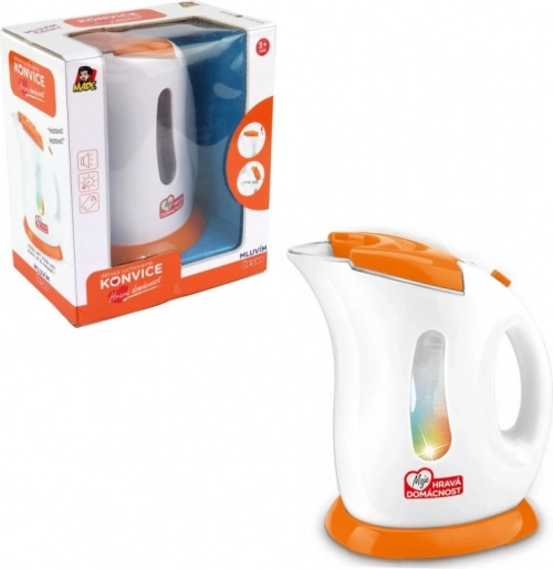 Een kinderwaterkoker op batterijen van 21 cm hoog mag in geen enkele speelgoedkeuken ontbreken. Het speelgoed spreekt met een Tsjechische stem en zegt zinnen zoals “Klaar” en “Het water kookt, pas op dat je je niet verbrandt”. Een geweldige keuze voor rollenspellen, het ontwikkelen van fantasie en fijne motoriek.