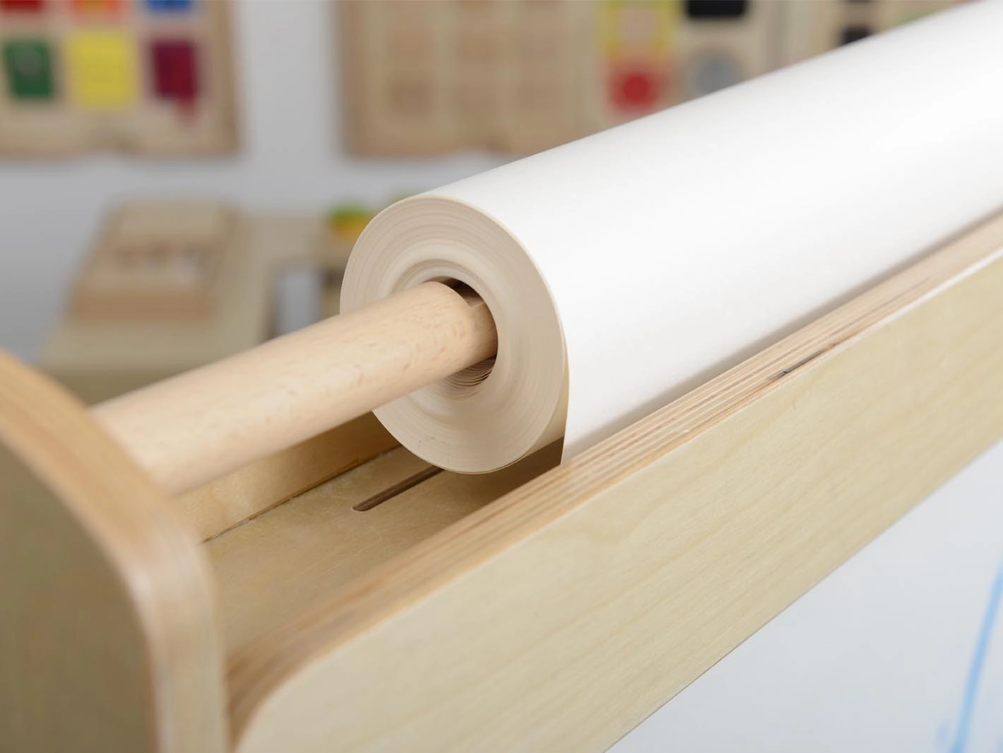 Het stevige frame van natuurlijk hout en wielen met rem zorgen voor stabiliteit en eenvoudig verplaatsen tussen klaslokaal, speelkamer of atelier.