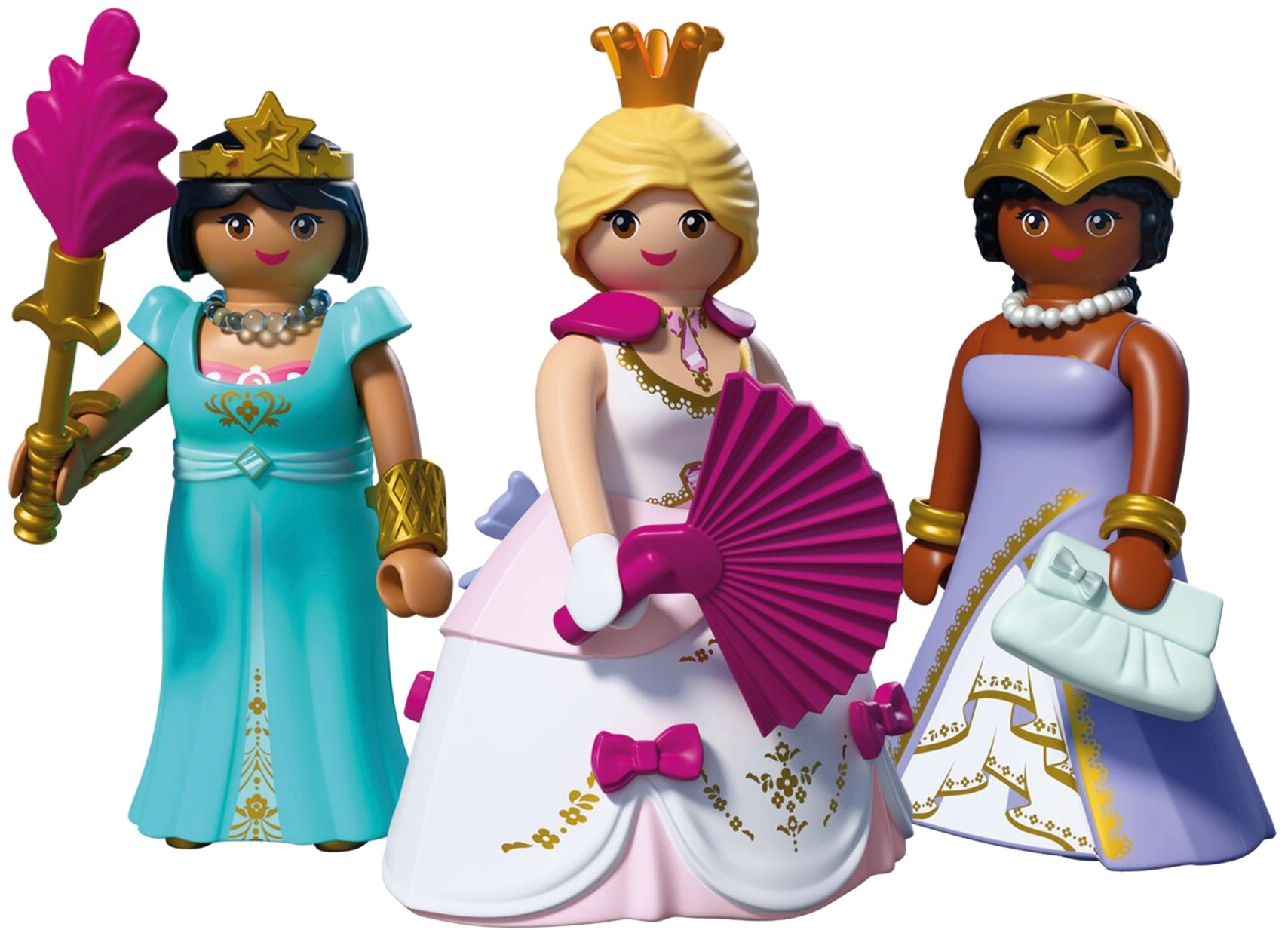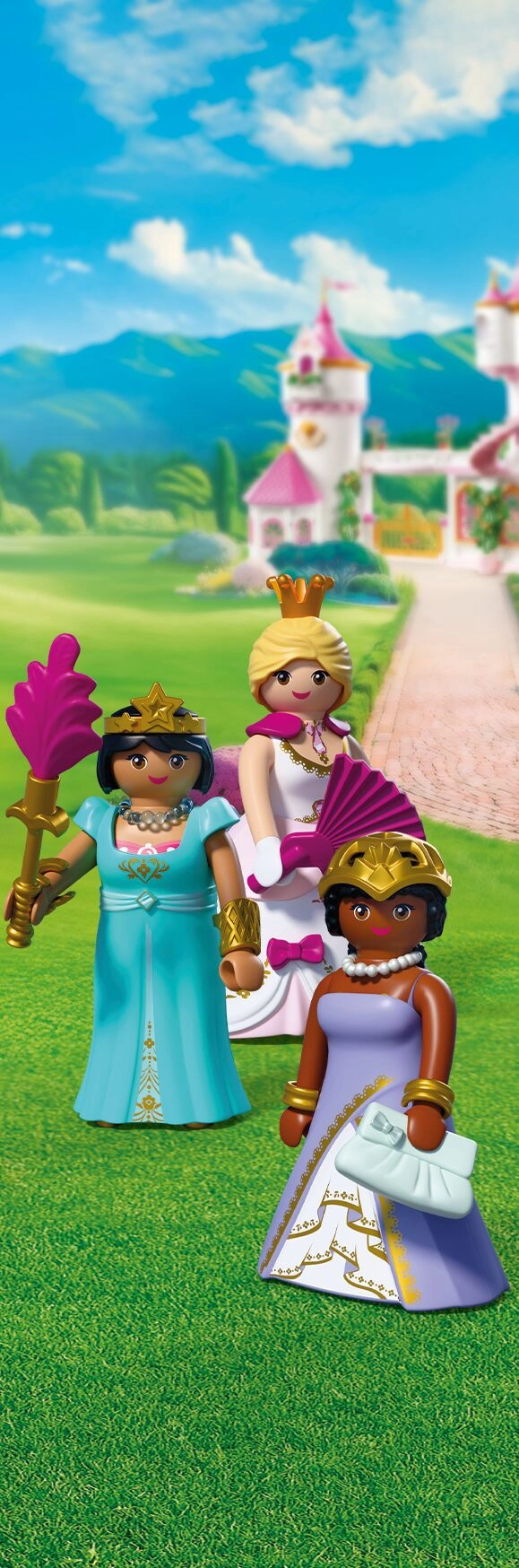 Drie betoverende prinsessen nodigen kinderen uit in een wereld vol koninklijke avonturen. Dankzij de verwisselbare jurken, rokken en sieraden kunnen jonge creators het uiterlijk van de figuren eenvoudig veranderen en steeds nieuwe verhalen bedenken – van een groot bal tot wandelingen door de kasteeltuinen.