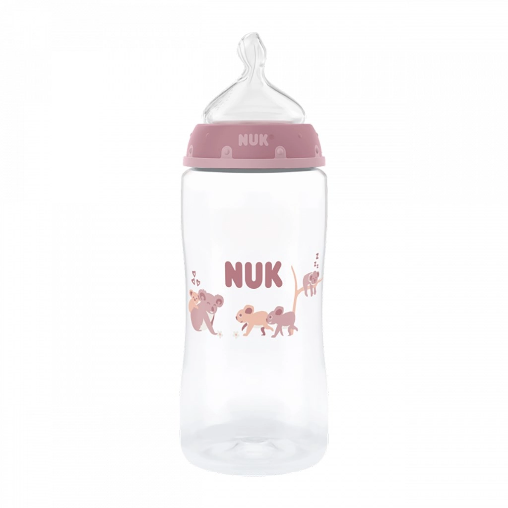 NUK First Choice Temperature Control 300 ml is een betrouwbare babyfles met een slimme temperatuuraanduiding die van kleur verandert afhankelijk van de warmte van de drank. Zodra de inhoud te heet is, verandert de indicator tussen de markeringen van blauw naar wit. Zo kun je je baby veiliger en met meer gemoedsrust voeden.