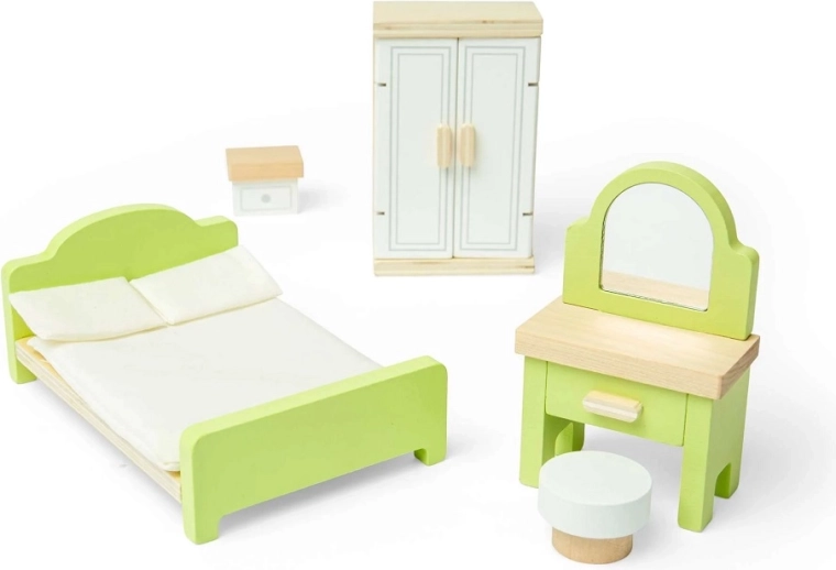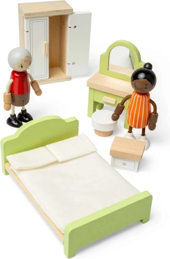 Bied kinderen realistisch speelplezier in een miniwereld. De houten slaapkamer voor het poppenhuis van BIGJIGS TOYS is verfijnd afgewerkt in zachte pasteltinten en natuurlijk hout. Kinderen kunnen poppen in bed leggen, de kast openen en het meubilair precies naar eigen wens rangschikken – alles met aandacht voor veiligheid en duurzaamheid.