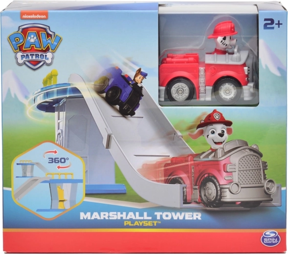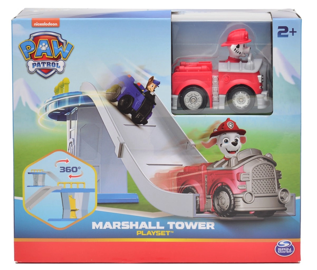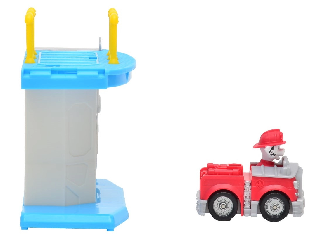 Deze kleurrijke speelset, geïnspireerd op de populaire serie PAW PATROL, brengt dagelijks speelplezier voor kinderen. De toren met afrit laat het voertuig soepel naar beneden glijden voor een reddingsactie. Inclusief mini-brandweerwagen van Marshall met stevig geïntegreerd puppyfiguurtje voor een snelle start van het spel.