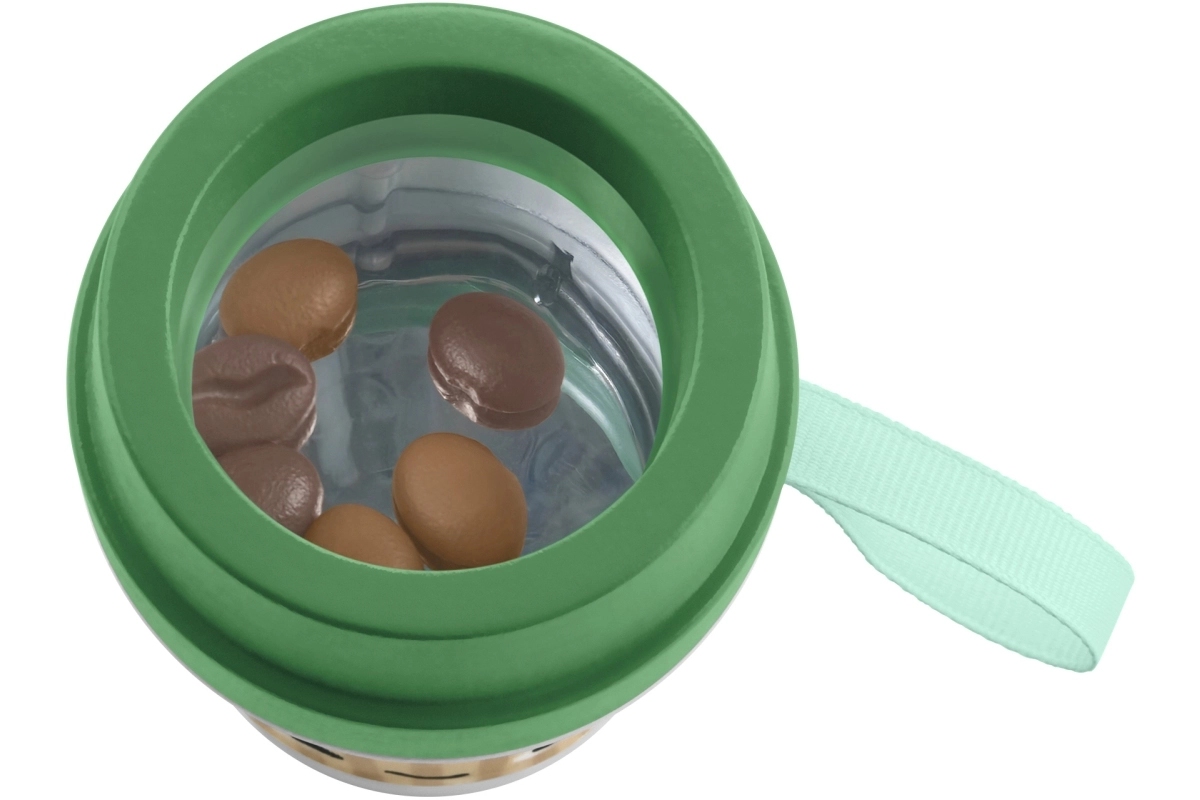 Dit speelse mini-koffiebekertje zorgt voor veel plezier en ontdekkingen. De transparante beker toont rammelende “koffieboontjes” die een prettig geluid maken bij het schudden en kinderen aanmoedigen om actief te verkennen. Het zachte deksel is ontworpen als een milde bijtring die verlichting biedt bij doorkomende tandjes.