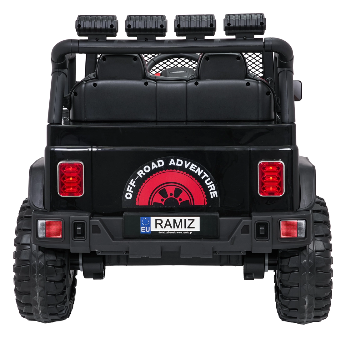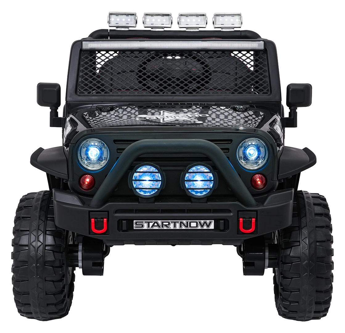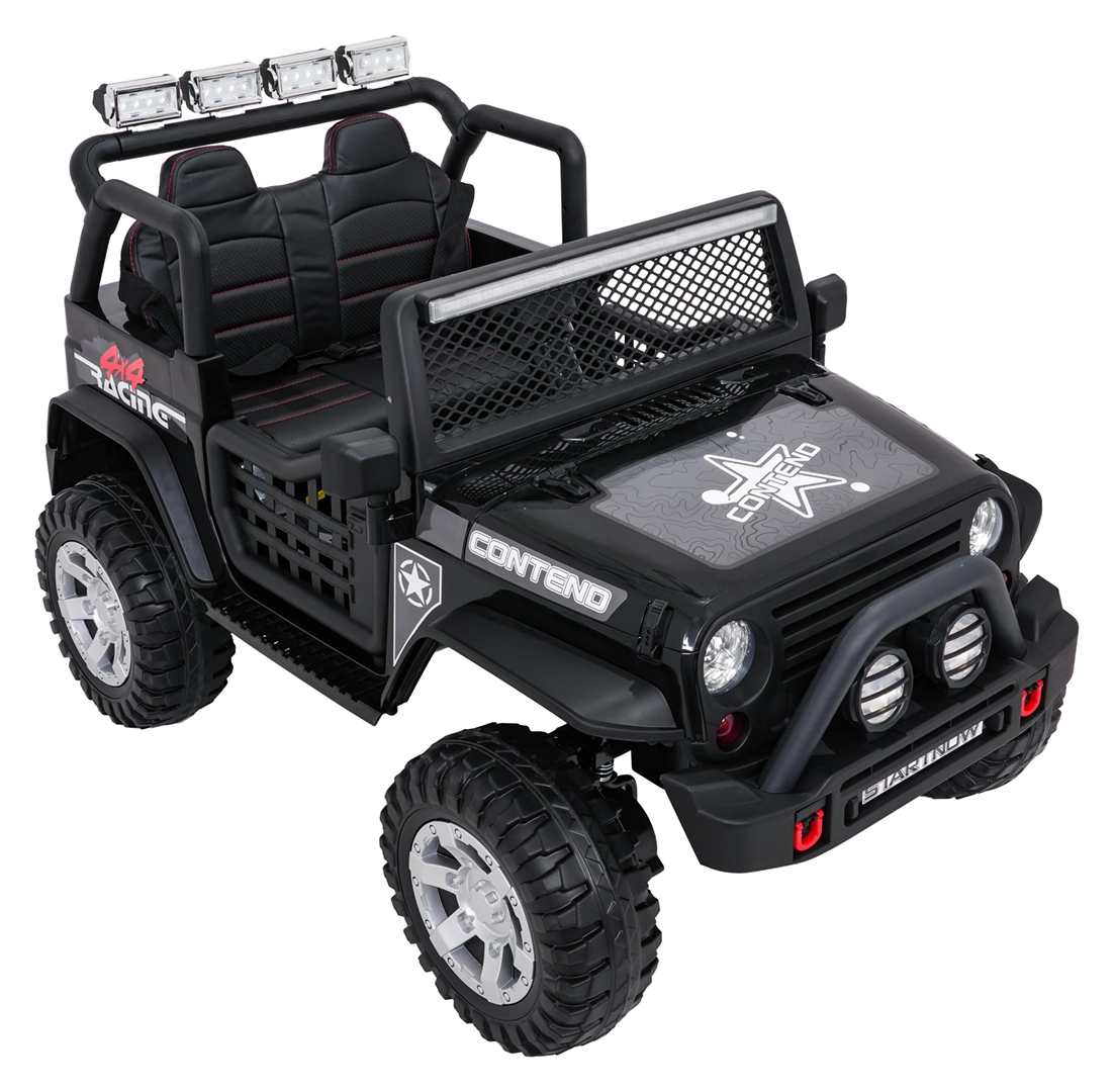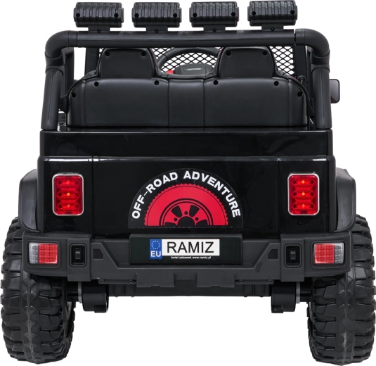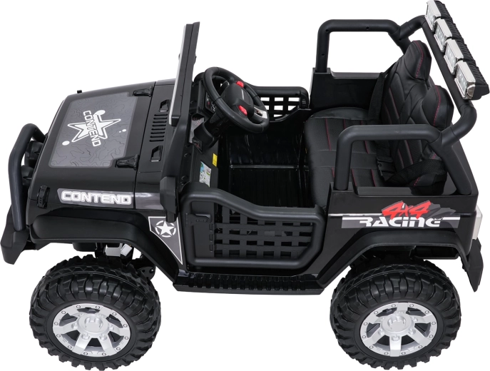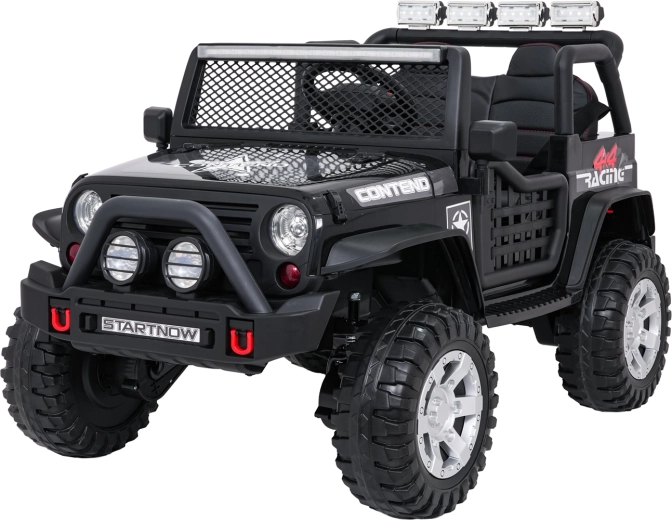 Deze zwarte offroad-kampioen is gemaakt voor avontuur. Dankzij vierwielaandrijving 4x4, hoge bodemvrijheid en zachte EVA-wielen kan hij moeiteloos over oneffen terrein en door de tuin rijden. Soepel starten, twee snelheden en rijden vooruit/achteruit zorgen voor comfortabel en veilig bedienen. LED-verlichting (voor, achter en daklampen) geeft een realistische look en betere zichtbaarheid.