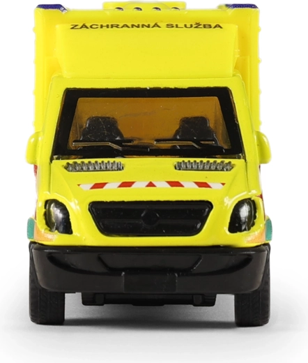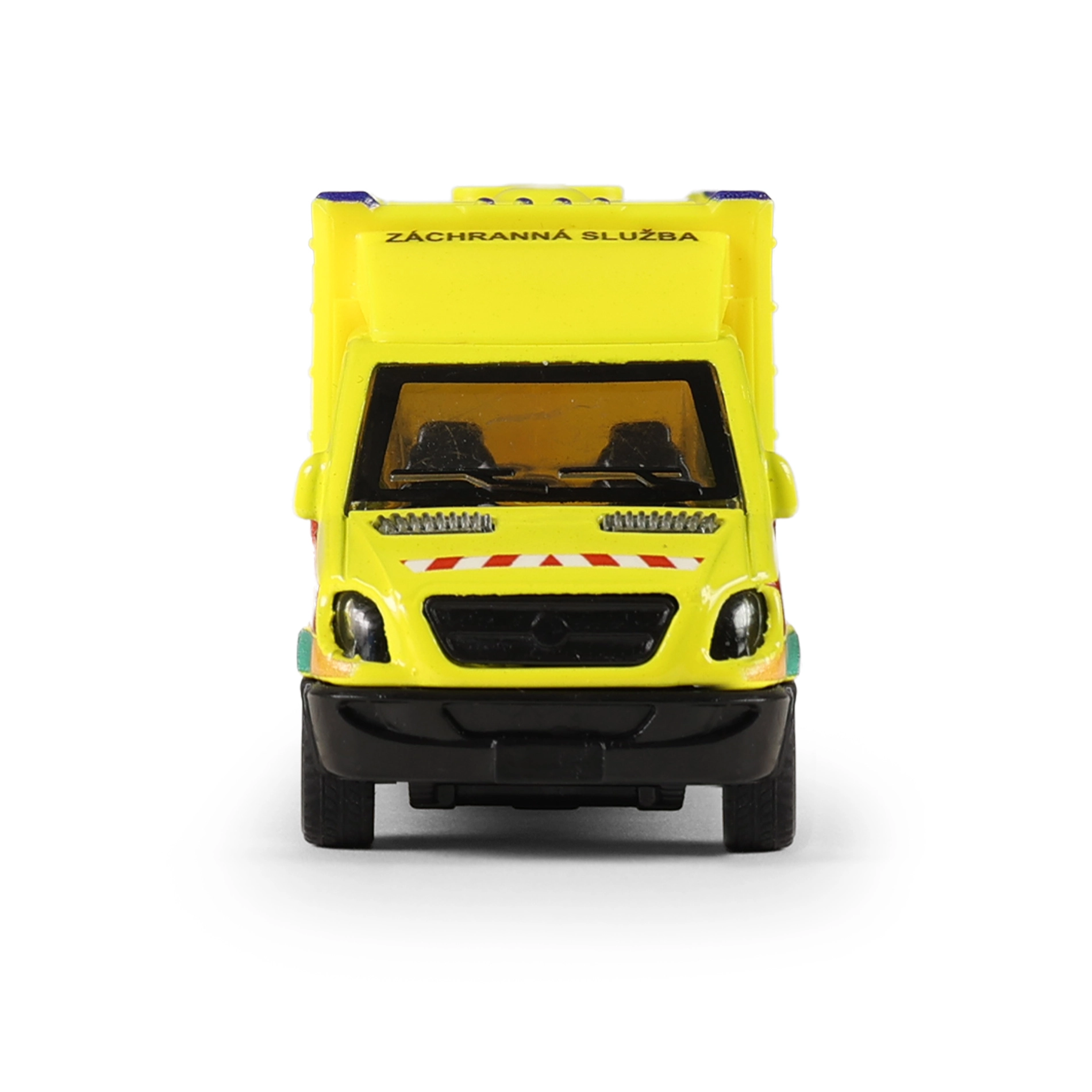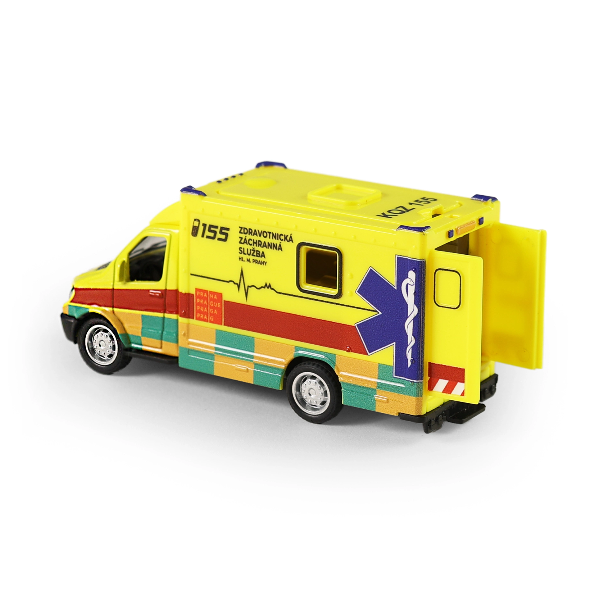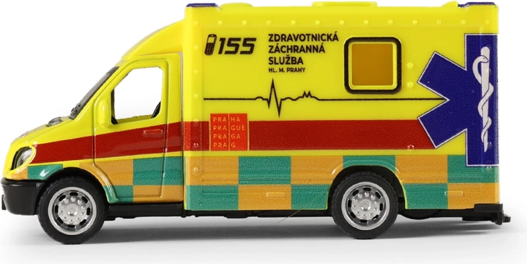 De redding is onderweg! Een stijlvolle metalen ambulance ontwikkeld in samenwerking met de Spoedeisende Medische Dienst van de hoofdstad Praag zal elke kleine hulpverlener enthousiast maken. Dankzij de terugtrekmotor hoef je het wagentje alleen maar naar achteren te trekken, los te laten en de missie vol avontuur kan beginnen.