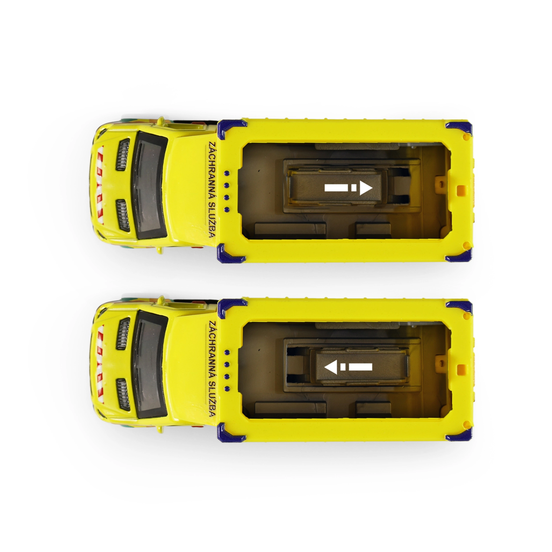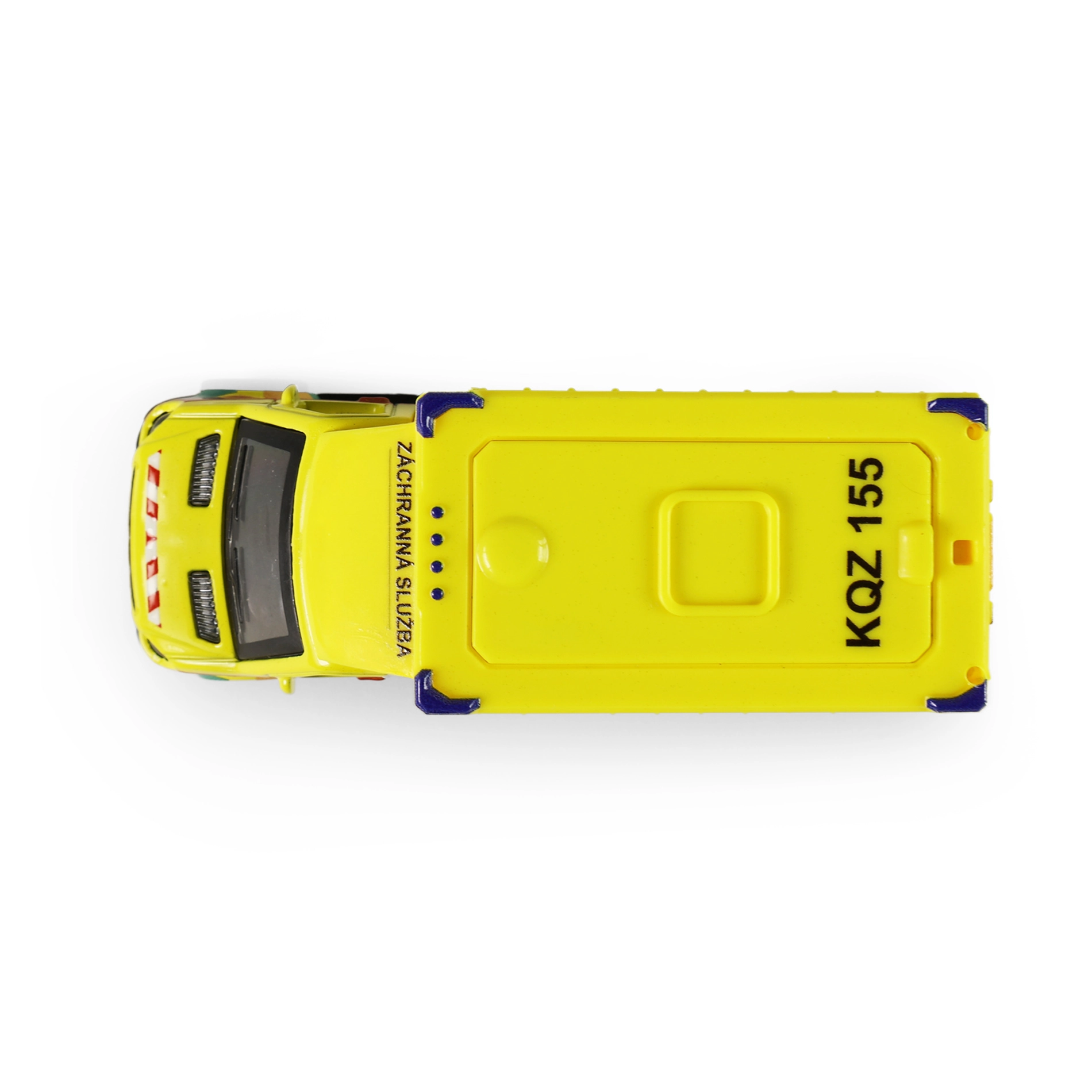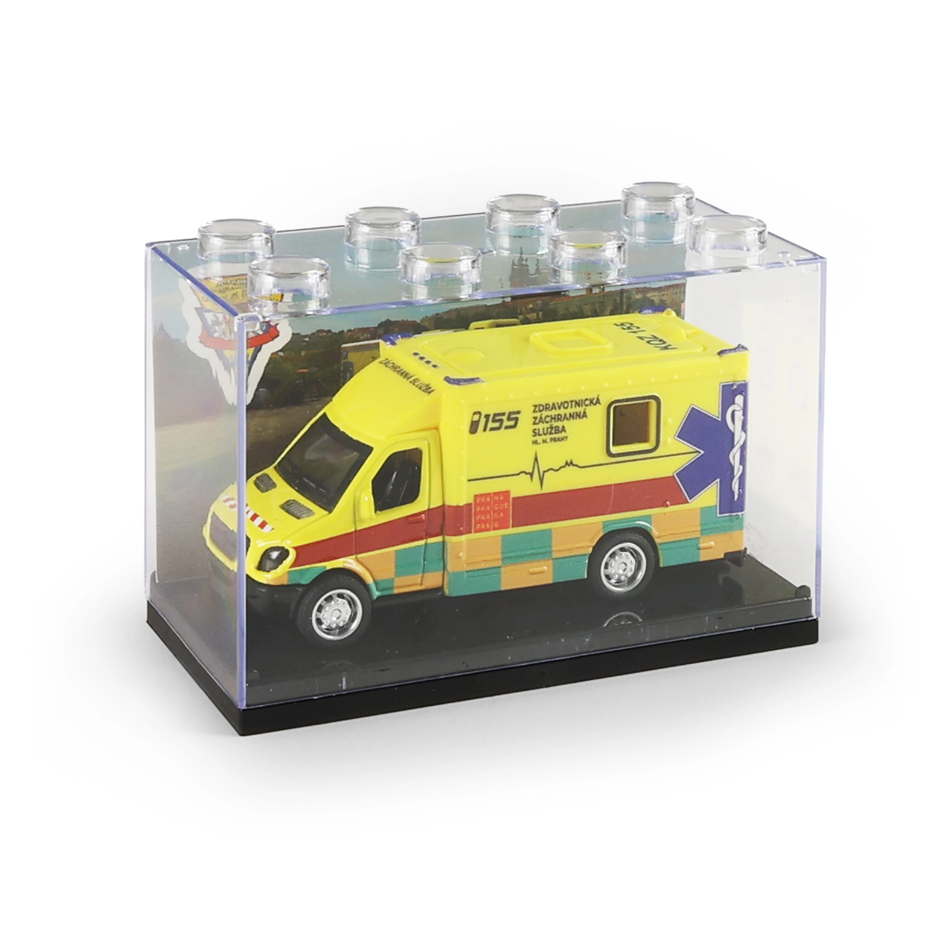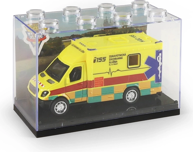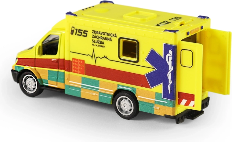 Dankzij de terugtrekmotor rijdt de ambulance gemakkelijk weg – ideaal voor snelle interventies in kinderspellen. Het officiële ontwerp, geïnspireerd door de Spoedeisende Medische Dienst van de hoofdstad Praag, geeft het speelgoed een realistische uitstraling.