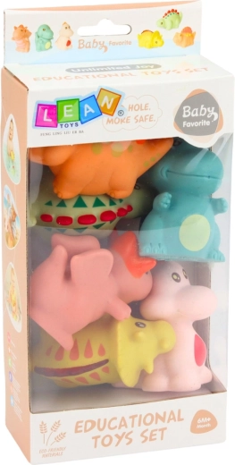Ontdek speelplezier in en buiten het water met een set van zachte rubberen dinosaurussen in pasteltinten. Zes schattige figuurtjes van zacht, veilig rubber zijn makkelijk vast te pakken, te knijpen en te laten drijven in bad. Ze stimuleren de fijne motoriek, zintuiglijke waarneming en fantasie van kinderen en toveren elk badmoment om tot een kleine prehistorische expeditie.