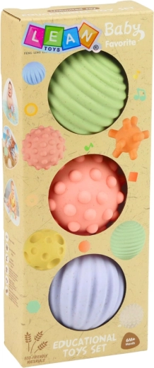 Ontdek speels en ontwikkelingsgericht plezier voor de allerkleinsten – sensorische balletjes in pasteltinten met verschillende oppervlakken. Het zachte materiaal is mild voor kinderhandjes, ligt prettig in de hand en ondersteunt de juiste ontwikkeling van de grijpreflex en oog-handcoördinatie. Dankzij de diverse texturen verkennen kinderen de wereld via aanraking, terwijl knijpen en rollen de vingers en handpalmen versterken.