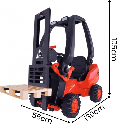 De heftruck is gemaakt van hoogwaardige kunststof die bestand is tegen slijtage en stoten, waardoor hij intensief gebruik door kinderen moeiteloos aankan. De in 3 posities verstelbare stoel groeit met het kind mee en het speciale loopvlak van de wielen zorgt voor stabiliteit en comfort. Er is ook een stuur met toeter voor een nog authentiekere speelervaring.