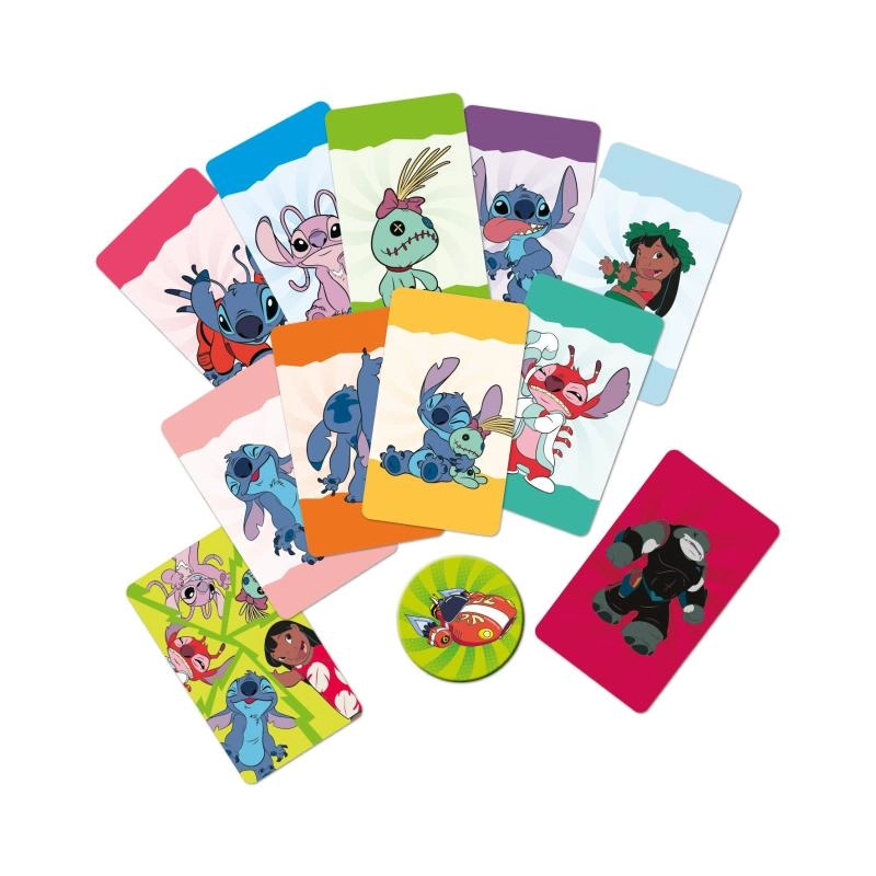 Geniet van snelle fun met de geliefde personages STITCH en Angel in een compact kaartspel voor onderweg. Win als je als eerste 5 kaarten van dezelfde kleur verzamelt. Ideaal voor 2–5 spelers vanaf 5 jaar – eenvoudige regels, vlotte rondes en veel lol altijd en overal.