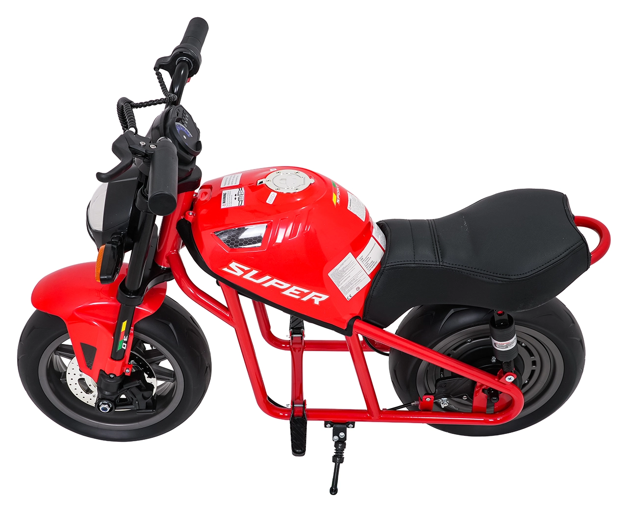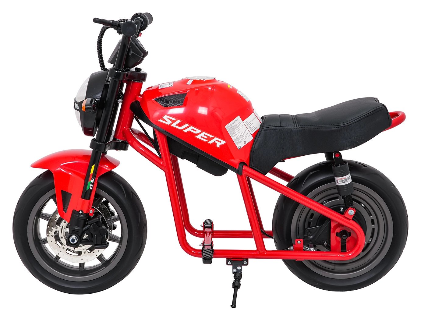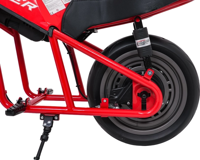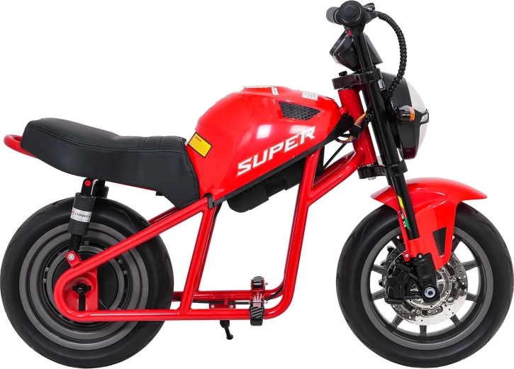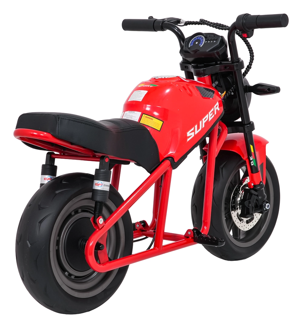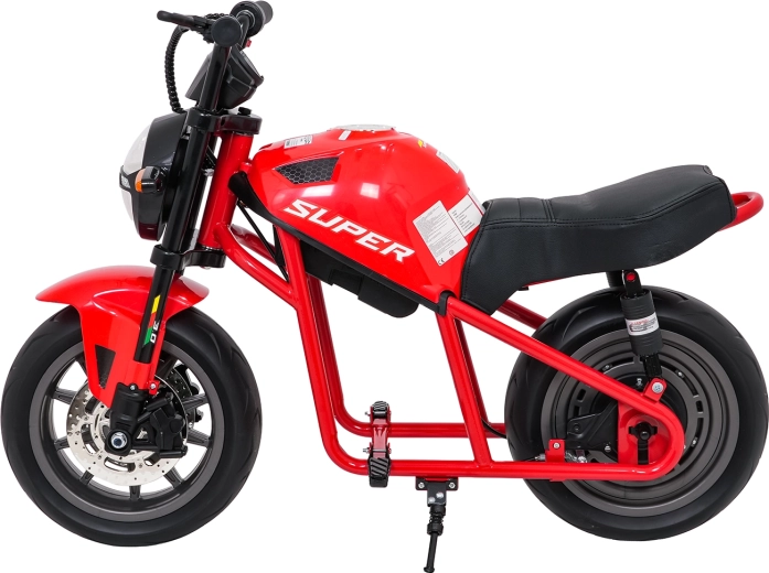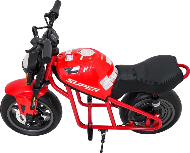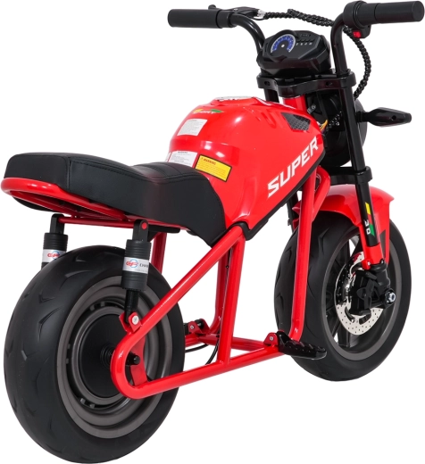 Ontdek het plezier op twee wielen met de elektrische kindermotor SUPERMOTO. De krachtige 300W aandrijving en 24V 9Ah accu zorgen voor een soepele start en voldoende vermogen voor voorwaarts rijden. Brede EVA-banden 33×12 cm bieden uitstekende stabiliteit en comfort, terwijl de verstelbare dubbele achterschokdempers oneffenheden opvangen.