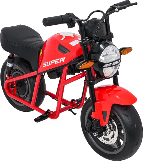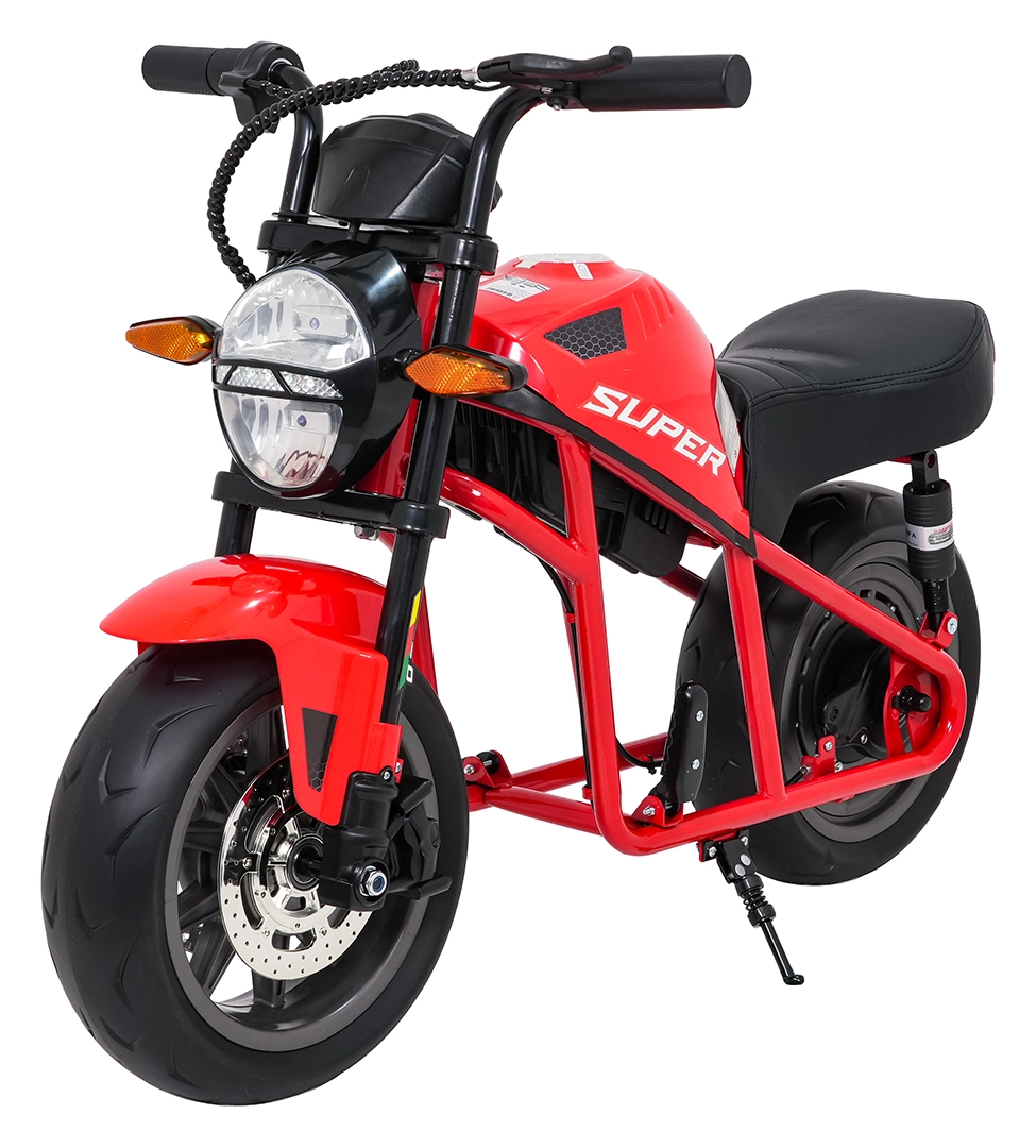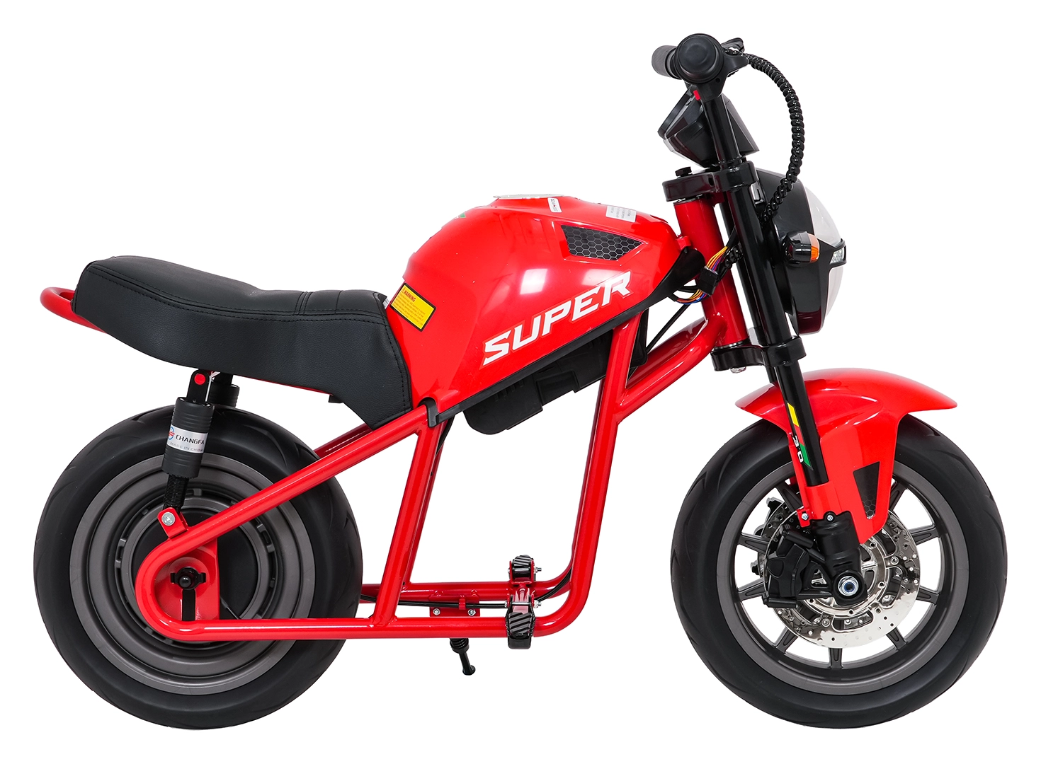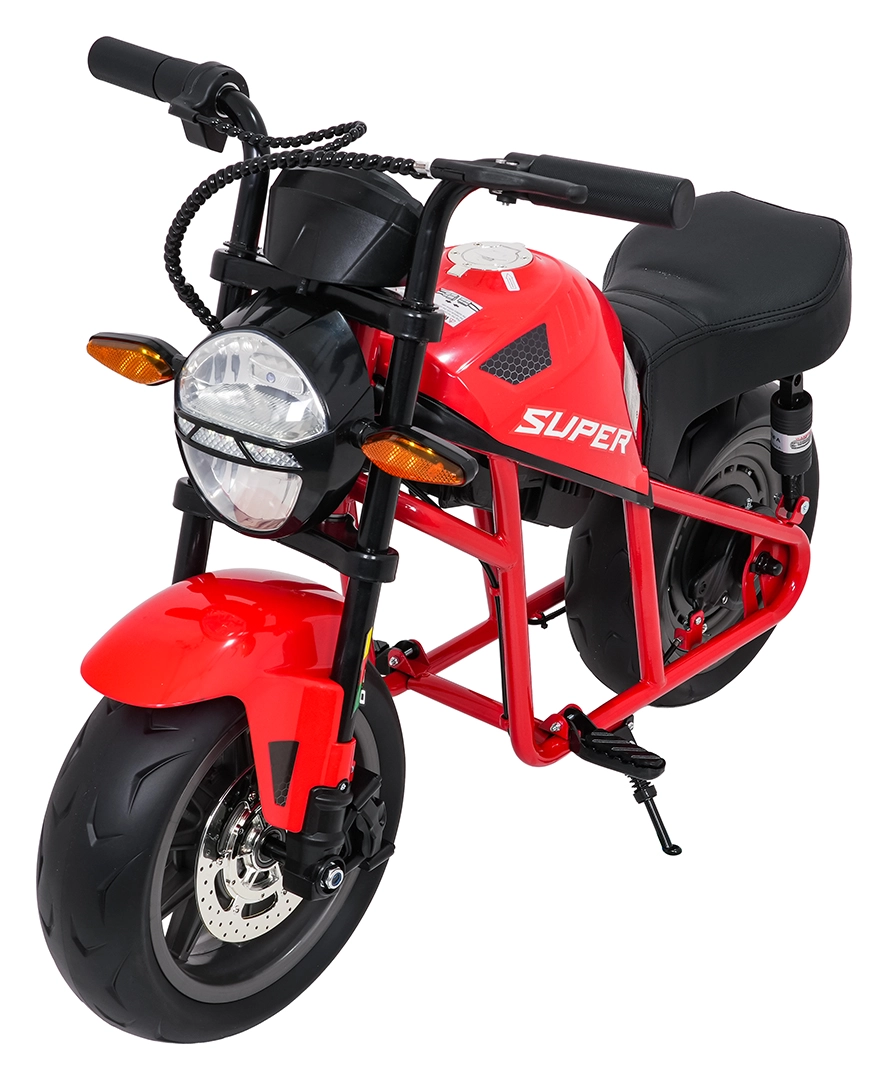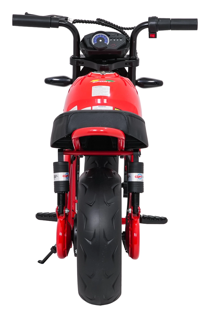 Ontdek het plezier op twee wielen met de elektrische kindermotor SUPERMOTO. De krachtige 300W aandrijving en 24V 9Ah accu zorgen voor een soepele start en voldoende vermogen voor voorwaarts rijden. Brede EVA-banden 33×12 cm bieden uitstekende stabiliteit en comfort, terwijl de verstelbare dubbele achterschokdempers oneffenheden opvangen.