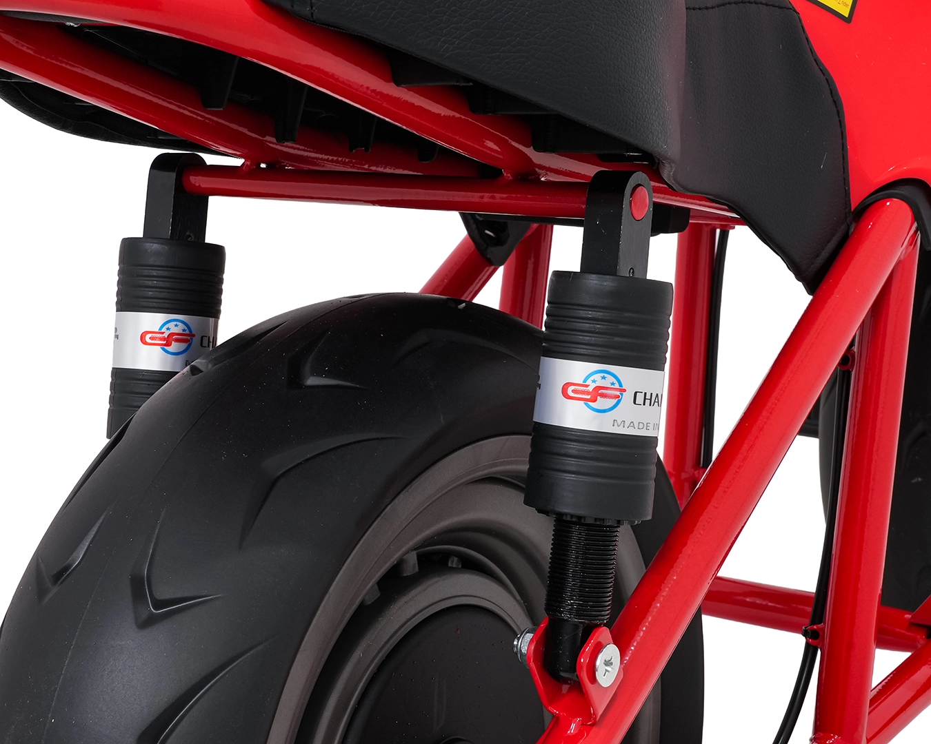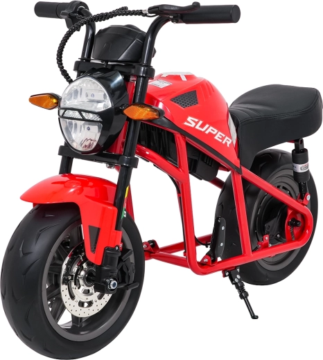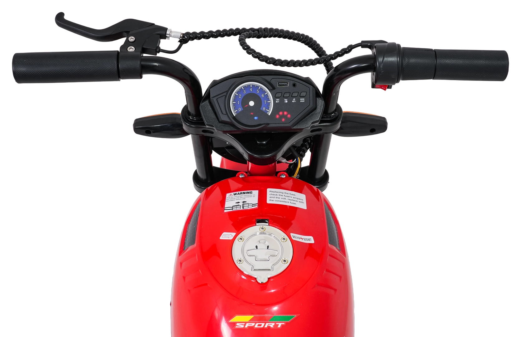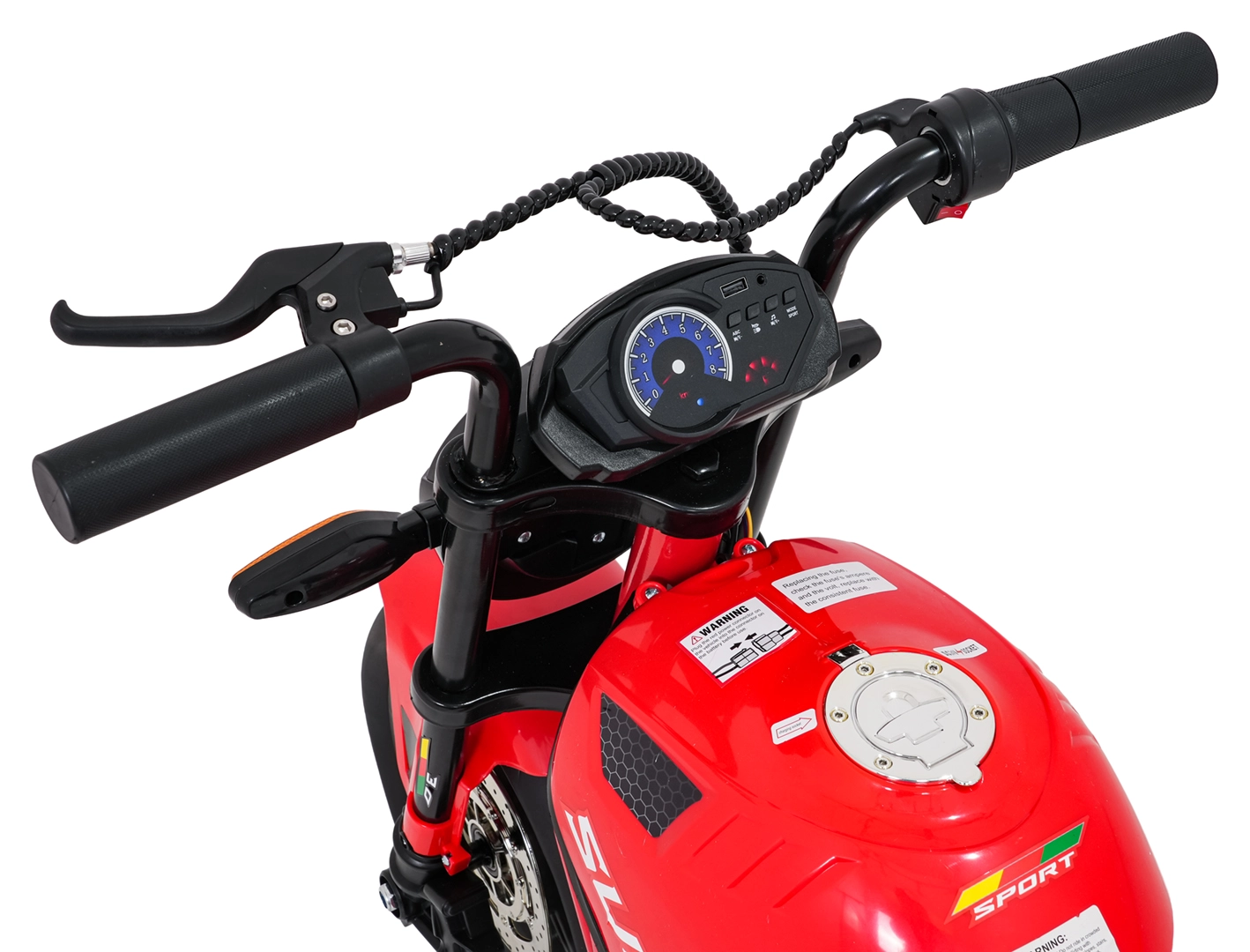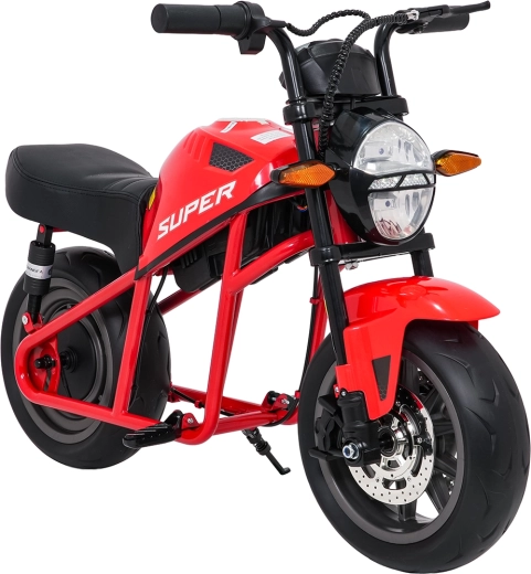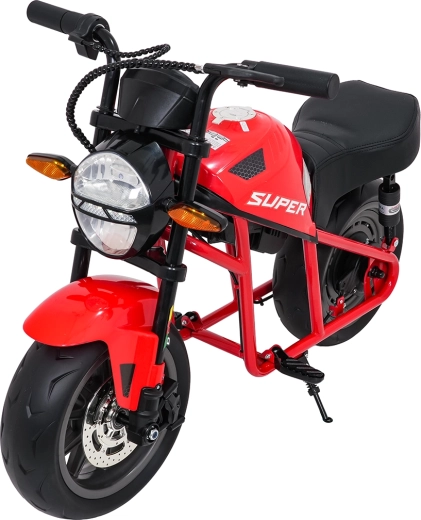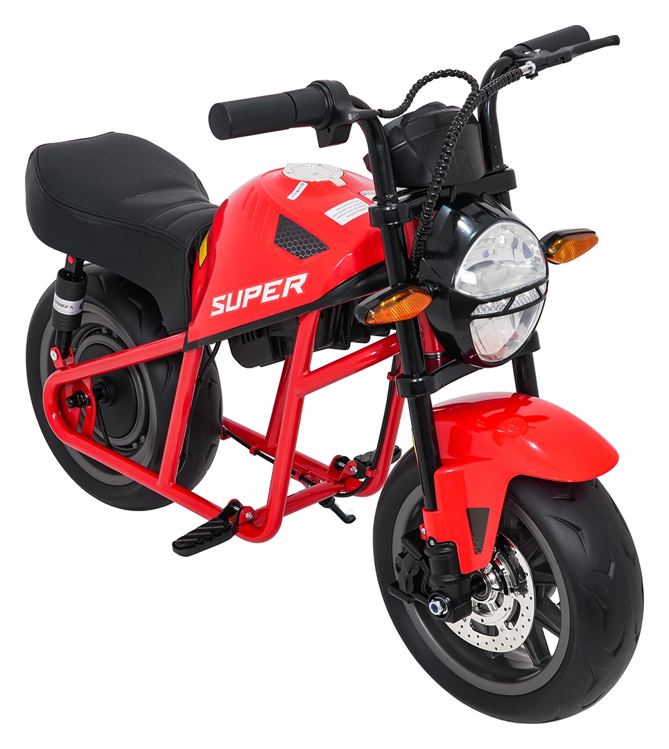 Ontdek het plezier op twee wielen met de elektrische kindermotor SUPERMOTO. De krachtige 300W aandrijving en 24V 9Ah accu zorgen voor een soepele start en voldoende vermogen voor voorwaarts rijden. Brede EVA-banden 33×12 cm bieden uitstekende stabiliteit en comfort, terwijl de verstelbare dubbele achterschokdempers oneffenheden opvangen.