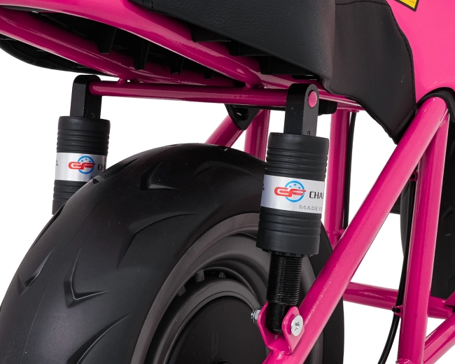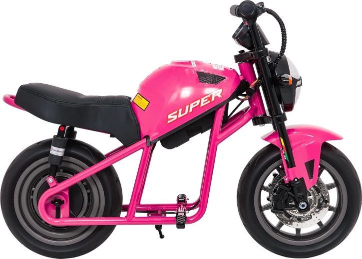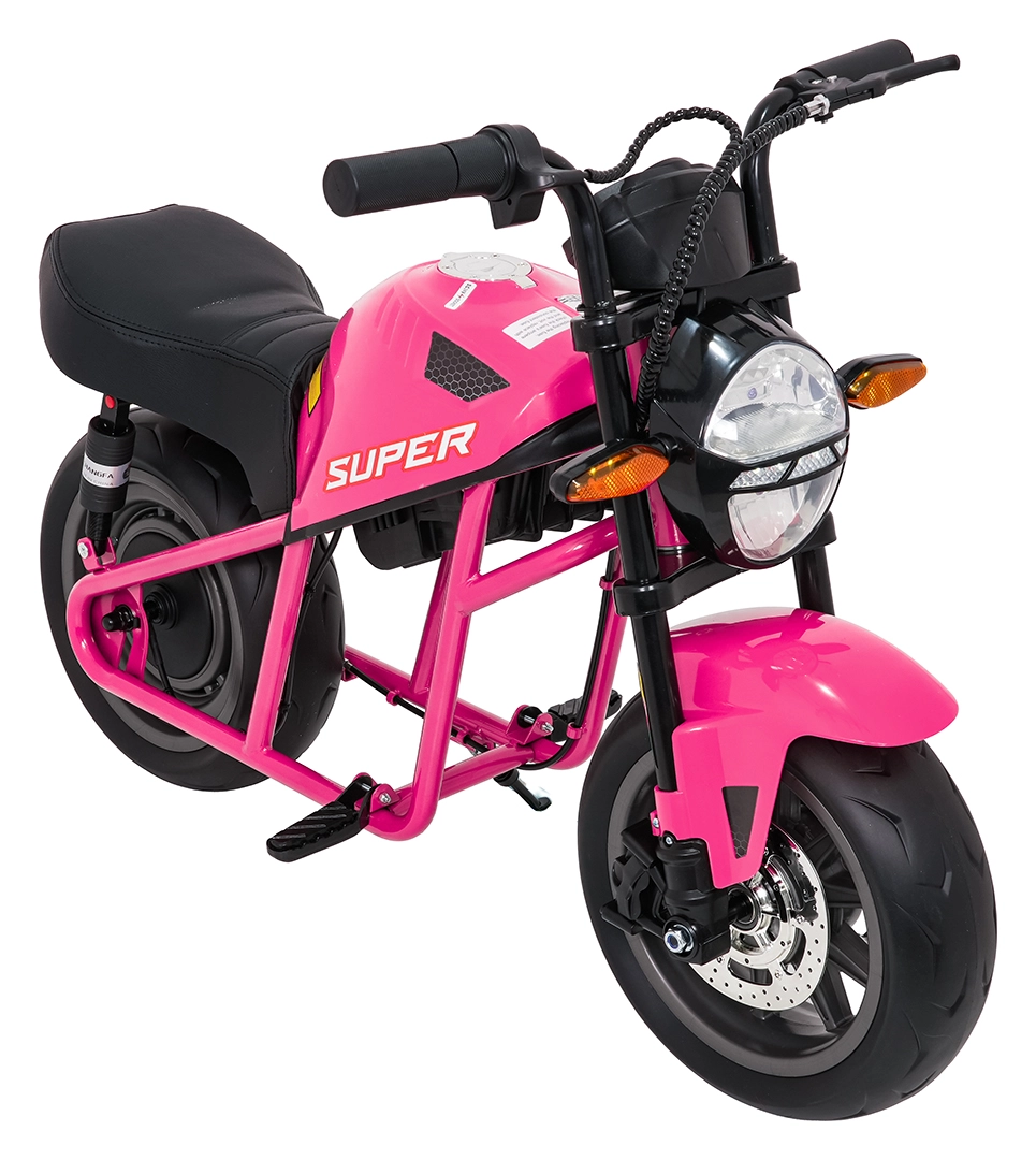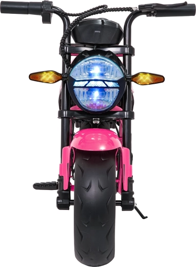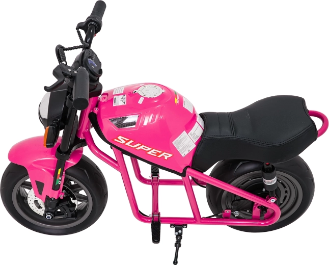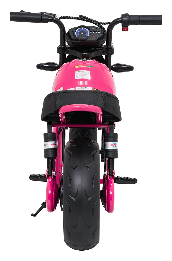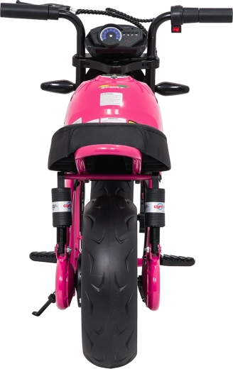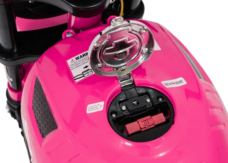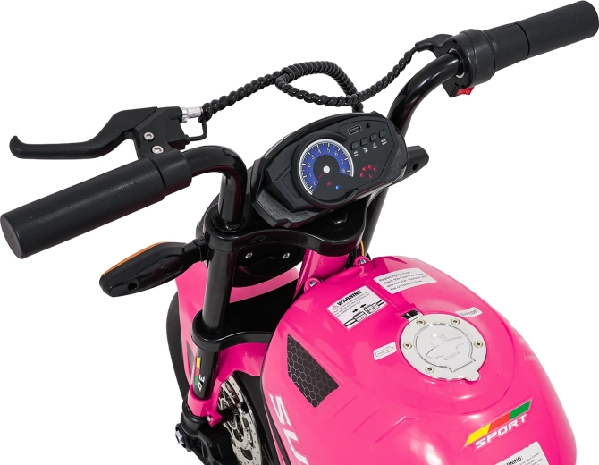 De roze elektrische kindermotor SUPERMOTO combineert sportieve looks, veiligheid en comfort. De krachtige 300 W motor en 24 V 9 Ah accu zorgen voor vlotte, soepele ritten, terwijl de zachte start rustig optrekken zonder schokken mogelijk maakt. Brede EVA-wielen (33×12 cm) verhogen de stabiliteit op verschillende ondergronden en de voorste LED-lamp met verlichte cockpit verbetert de zichtbaarheid.