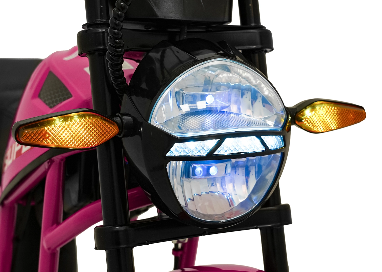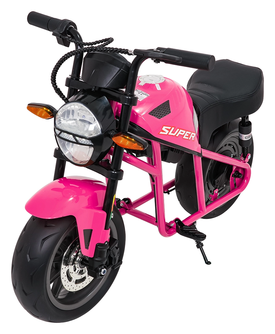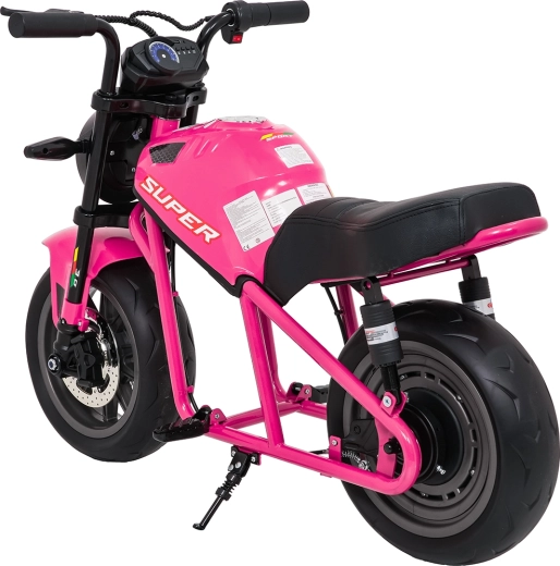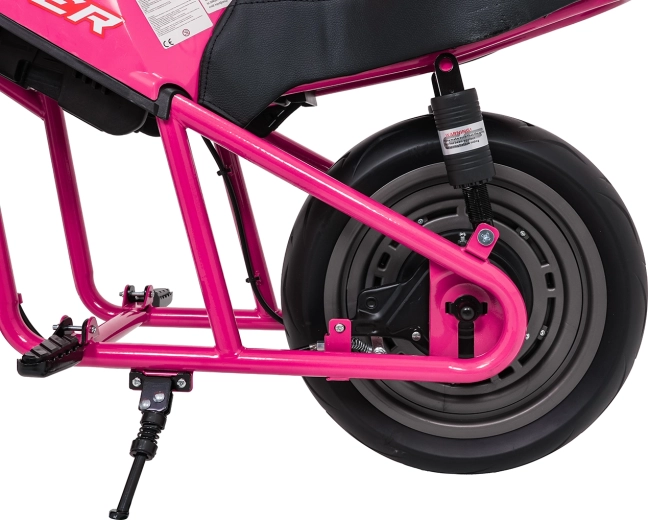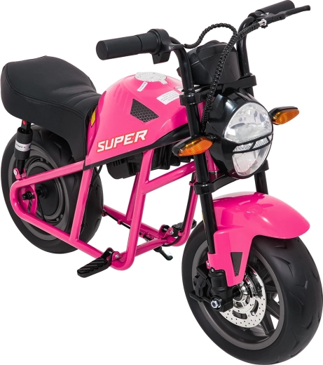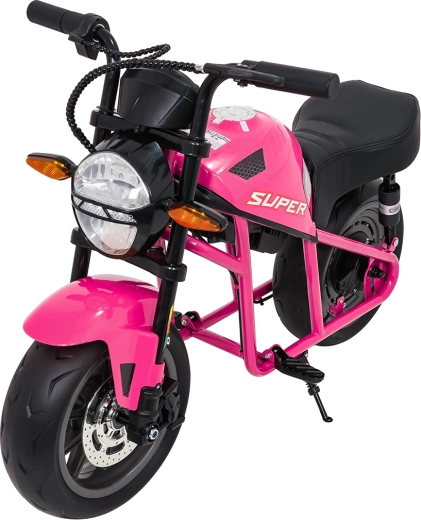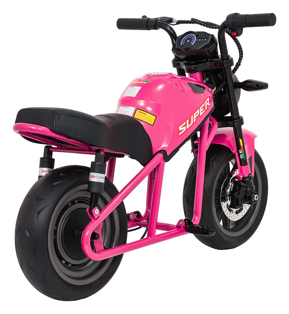 De roze elektrische kindermotor SUPERMOTO combineert sportieve looks, veiligheid en comfort. De krachtige 300 W motor en 24 V 9 Ah accu zorgen voor vlotte, soepele ritten, terwijl de zachte start rustig optrekken zonder schokken mogelijk maakt. Brede EVA-wielen (33×12 cm) verhogen de stabiliteit op verschillende ondergronden en de voorste LED-lamp met verlichte cockpit verbetert de zichtbaarheid.