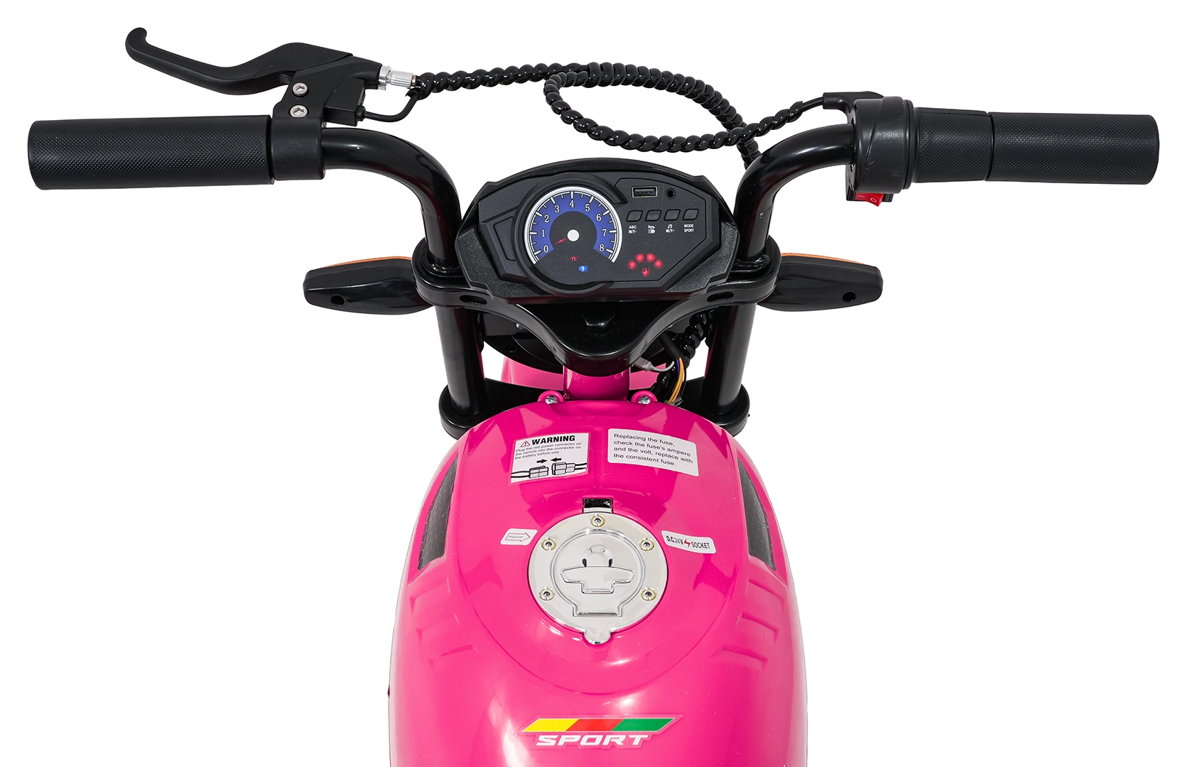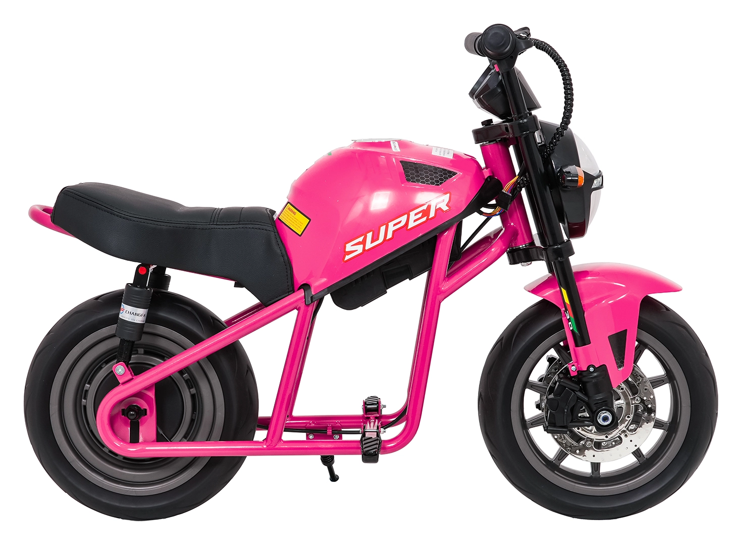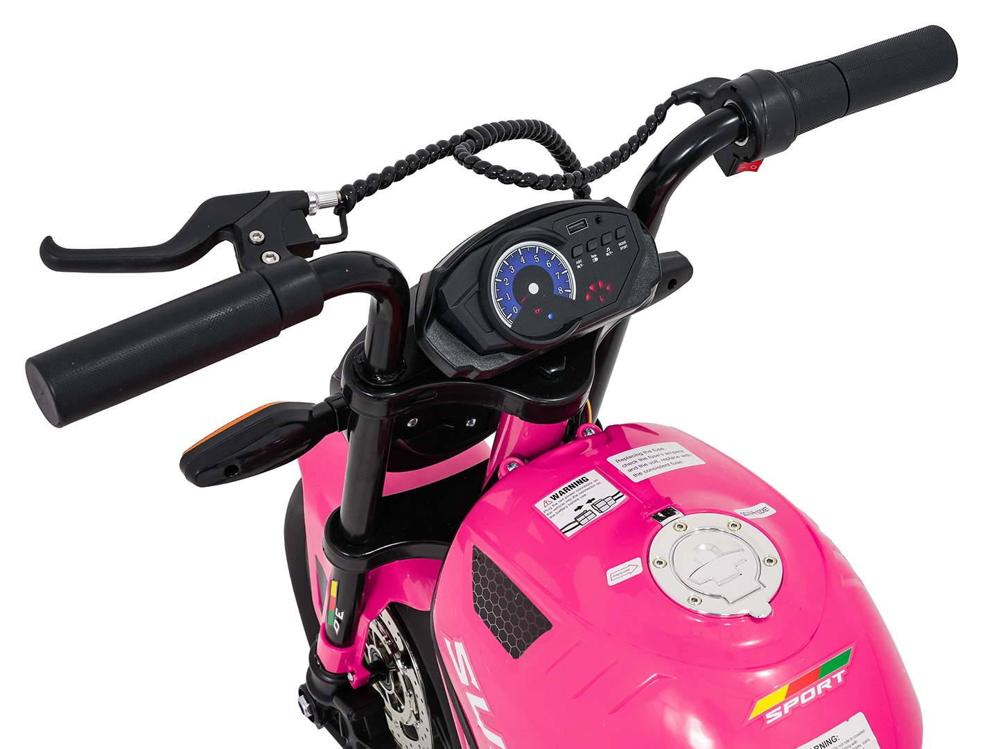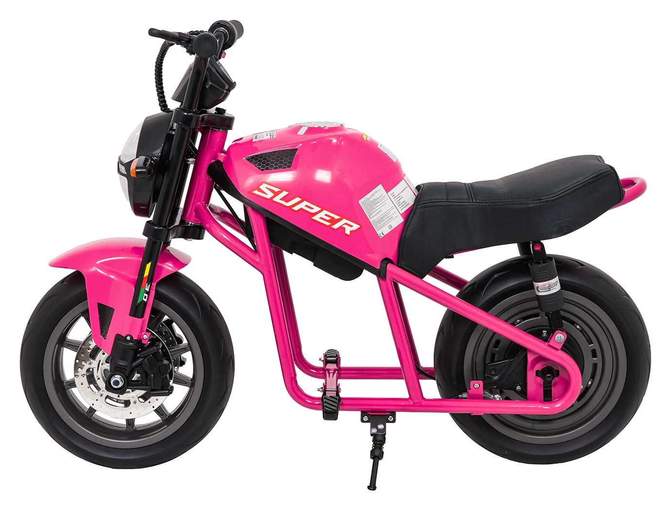 De roze elektrische kindermotor SUPERMOTO combineert sportieve looks, veiligheid en comfort. De krachtige 300 W motor en 24 V 9 Ah accu zorgen voor vlotte, soepele ritten, terwijl de zachte start rustig optrekken zonder schokken mogelijk maakt. Brede EVA-wielen (33×12 cm) verhogen de stabiliteit op verschillende ondergronden en de voorste LED-lamp met verlichte cockpit verbetert de zichtbaarheid.