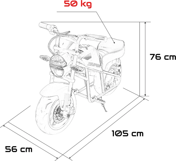 De stijlvolle elektrische kindermotor SUPERMOTO in roze biedt een krachtige motor van 300 W, een krachtige accu 24 V 9 Ah en stabiele EVA-wielen 33×12 cm. Voor comfort en rijzekerheid zijn er voorste LED-lampen, een verlichte cockpit, soepele wegrijfunctie en dubbele achterdempers met verstelbare hardheid. Voor extra fun: Bluetooth, USB, MP3 en AUX met ingebouwde melodieën. Het maximale draagvermogen is 50 kg.