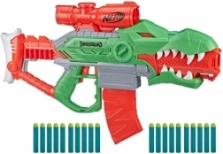 Maak je klaar voor onvergetelijke avonturen met machtige dinosaurussen. Nerf DinoSquad Rex-Rampage combineert een op de T-Rex geïnspireerd design met een hoge vuursnelheid. Dankzij het gemotoriseerde systeem en het magazijn voor 10 darts kun je snel en nauwkeurig je doelen raken.
