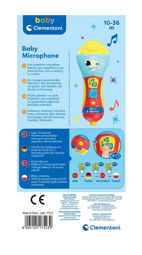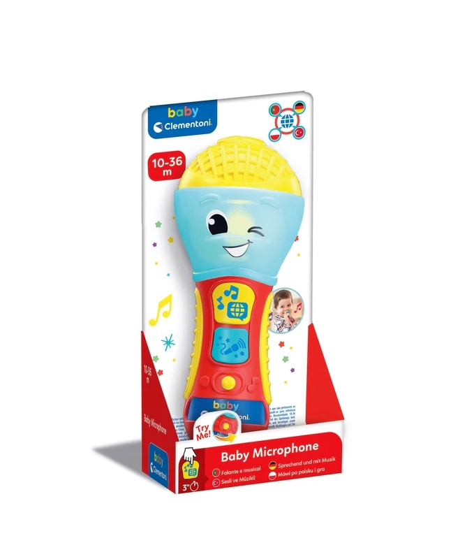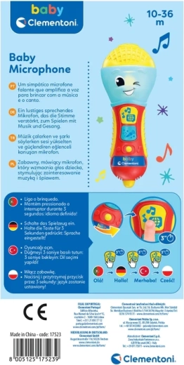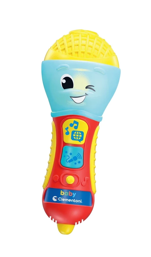 De kindersprekende microfoon CLEMENTONI is een geweldige interactieve speelgoedmicrofoon voor kleine zangers en zangeressen. Met liedjes, achtergrondmuziek en eenvoudige zinnen leert hij de eerste letters en nieuwe woorden in 4 talen. De kleurrijke LED en 2 functietoetsen zorgen voor een boeiende lichtshow en leuke effecten.