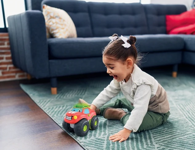 Grote wielen, afgeronde vormen en een stevige constructie. Ideaal voor kleine kinderhandjes en dagelijks speelplezier thuis en op het tapijt.