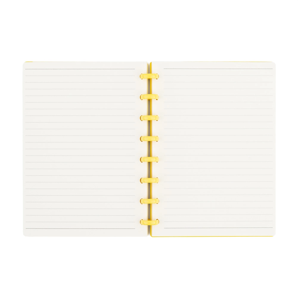 Binnenin vind je 80 gelijnde vellen voor schrijven, schetsen en snelle ideeën. De ring- (disc-)binding zorgt voor comfortabel bladeren en een overzichtelijke organisatie van je notities.