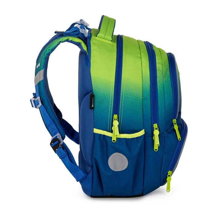 Praktische schoolset voor leerlingen van groep 4–6 (basisschool) met een ergonomische OXY NEXT-rugzak, een ruim etui en een gymzak. De rugzak heeft anatomisch gevormde rugpadding, gepolsterde schouderbanden met borstriempje, reflecterende elementen en veel vakken voor perfecte organisatie. Een robuuste waterdichte bodem, lichtgewicht constructie en modern ombre‑design in blauw‑groene tinten zorgen elke schooldag voor comfort en veiligheid.