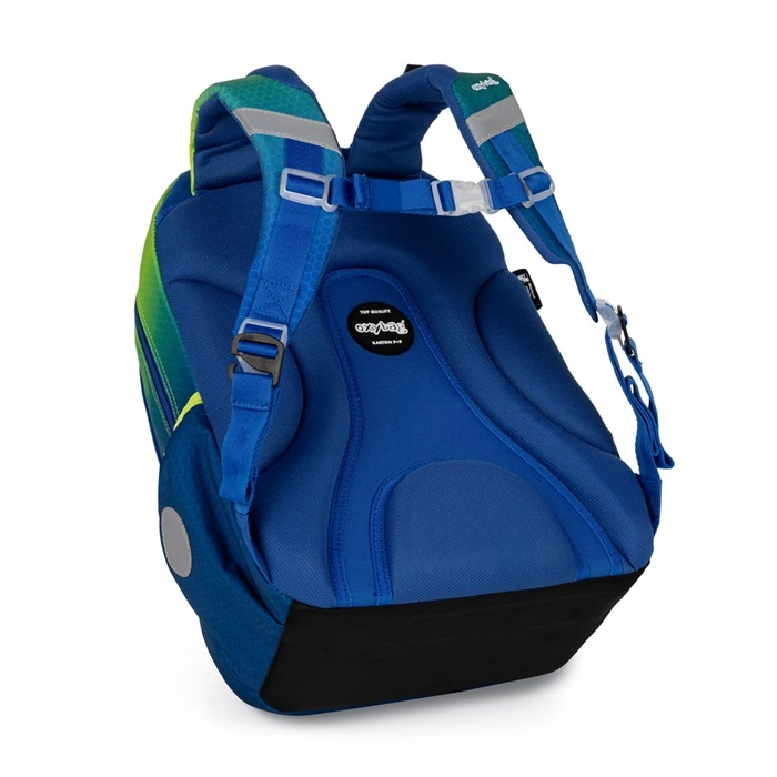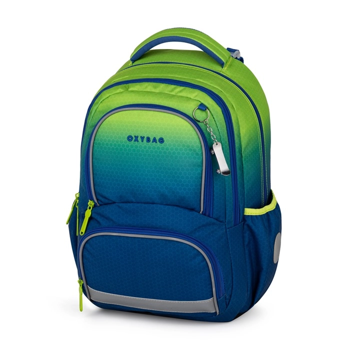 De schoolset OXY NEXT Ombre Green is ontworpen voor kinderen met een lengte vanaf 128 cm. Het hoofdelement is de lichte schoolrugzak met een inhoud van 21 l en een draagcapaciteit van 8 kg. Dankzij de anatomisch gevormde rug en de gepolsterde, verstelbare banden met borstriempje biedt hij comfort en een gezonde gewichtsverdeling. Reflecterende elementen verhogen de zichtbaarheid bij schemer en regen, terwijl de verstevigde waterdichte bodem de inhoud tegen vocht beschermt.