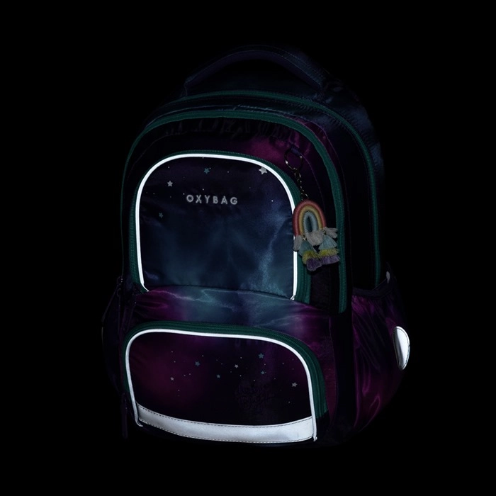 De OXY NEXT Dream schoolset met galactisch motief houdt rekening met comfort, veiligheid en perfecte organisatie van schoolbenodigdheden. De rugzak is anatomisch gevormd, heeft gepolsterde schouderbanden en een borstriem voor stabiel en gezond dragen. Dankzij veel vakken, een houder voor sleutels/chip en twee ruime zijvakken blijft alles altijd netjes geordend.