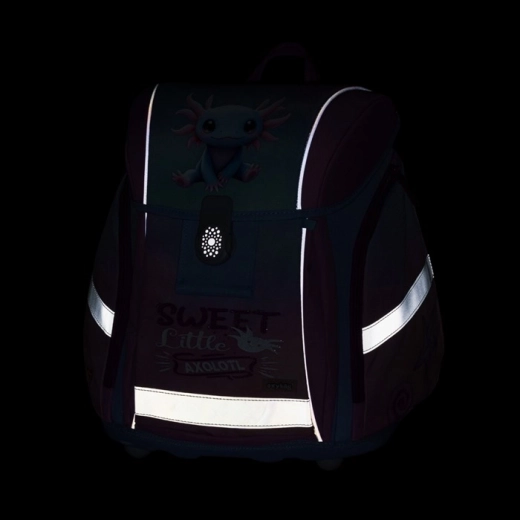 Ervaar elke schooldag comfort. De schoolrugzak Premium Light Axolotl combineert een lichte constructie met slimme organisatie en aandacht voor gezond dragen. De ademende rugvulling en de ergonomisch gevormde rugplaat (33 cm) ontlasten de rug, terwijl brede, gewatteerde schouderbanden goed aansluiten en het gewicht gelijkmatig verdelen. Borst- en aantrekbanden helpen de rugzak stabiel te houden, ook tijdens rennen of traplopen.