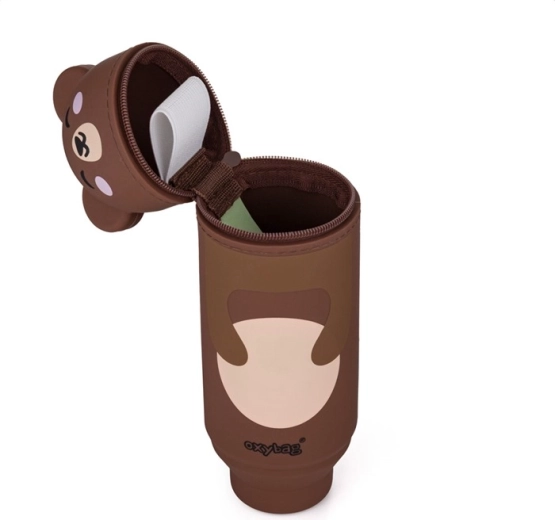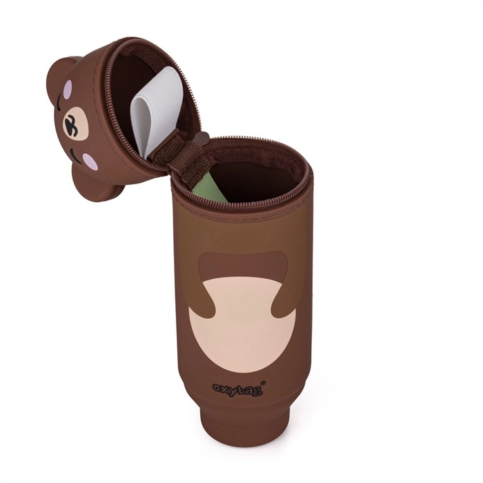 Schattige siliconen etui in de vorm van een beertje, geliefd bij elke scholier. Dankzij de 3D oortjes voelt het als een klein vriendje op je bureau, het is gemaakt van een prettig, licht materiaal en is makkelijk schoon te maken. Binnenin vind je een lus voor een gum en één ruim vak met rits voor kleurpotloden, pennen en kleine spulletjes. Extra magie: knijp het etui zachtjes samen en het verandert direct in een pennenhouder die stevig op tafel staat.