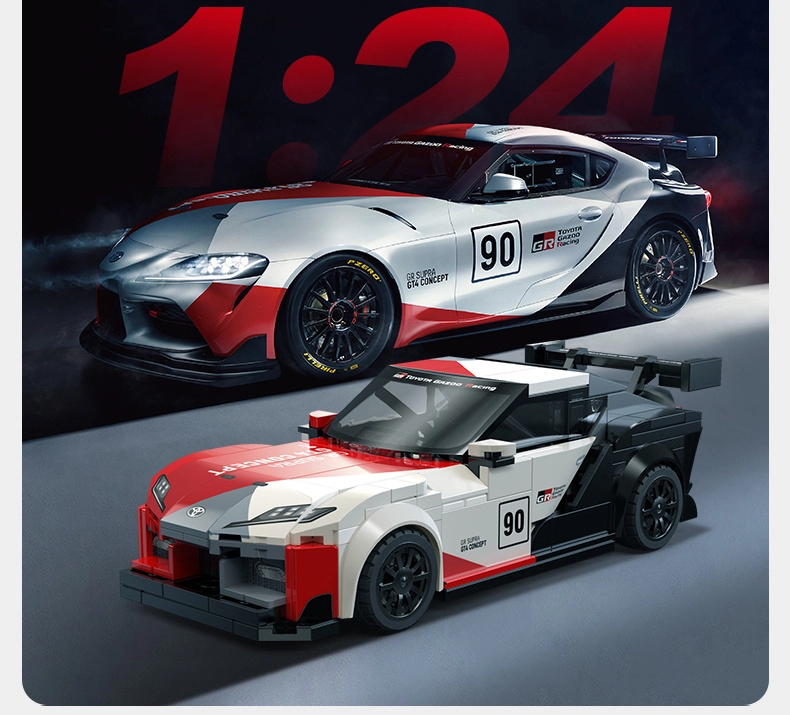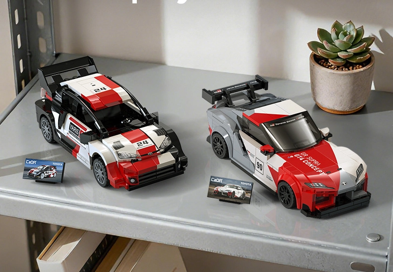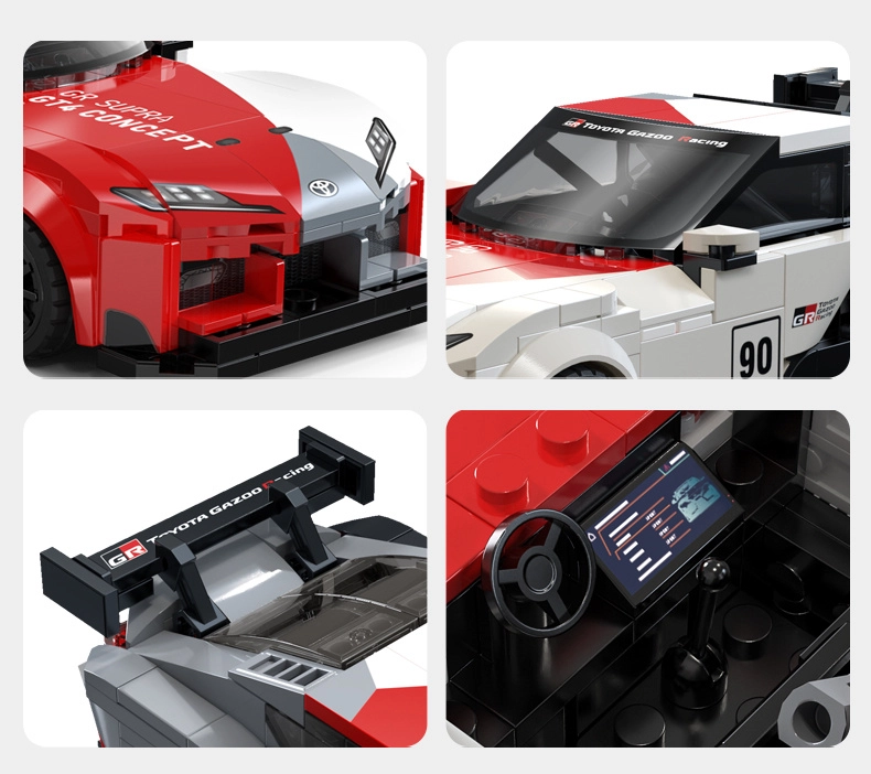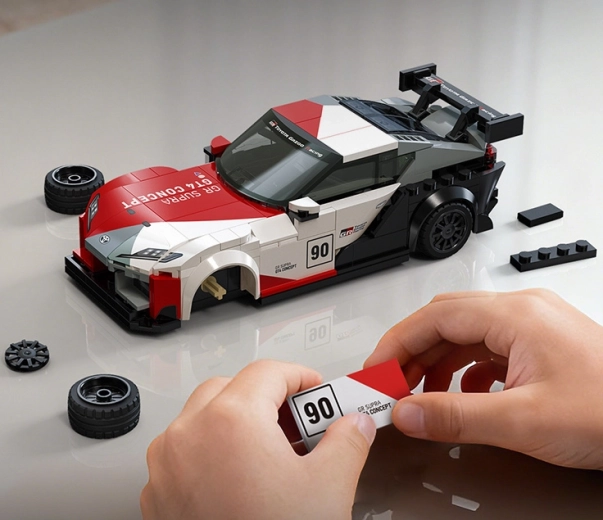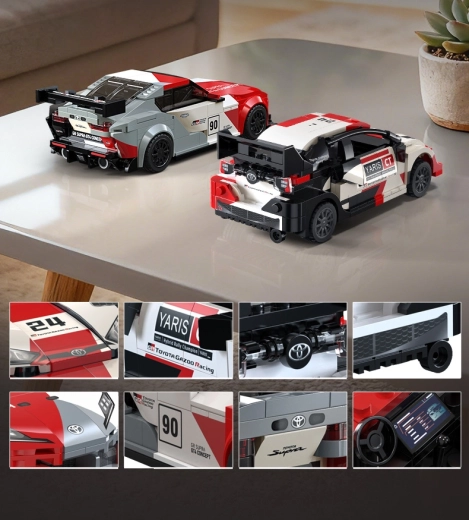 Het model valt op door de opvallende bodykit, de grote achtervleugel en de racekleuren geïnspireerd door TOYOTA GAZOO Racing. Ideaal voor fans van motorsport en snelle bouwsets.