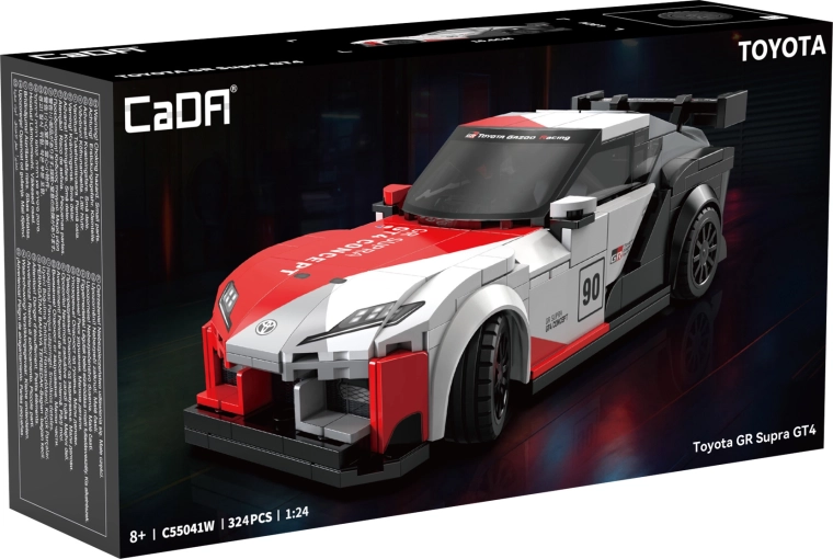 Dit statische model uit de CaDA-serie vangt trouw de agressieve silhouet en aerodynamische lijnen van de race-spec TOYOTA GR Supra GT4. De bouwset is ontworpen voor leuk bouwen, uitstallen op een plank én licht spelen dankzij de rollende wielen. Prints op de onderdelen onderstrepen de realistische race-elementen, inclusief spoiler en startnummer.