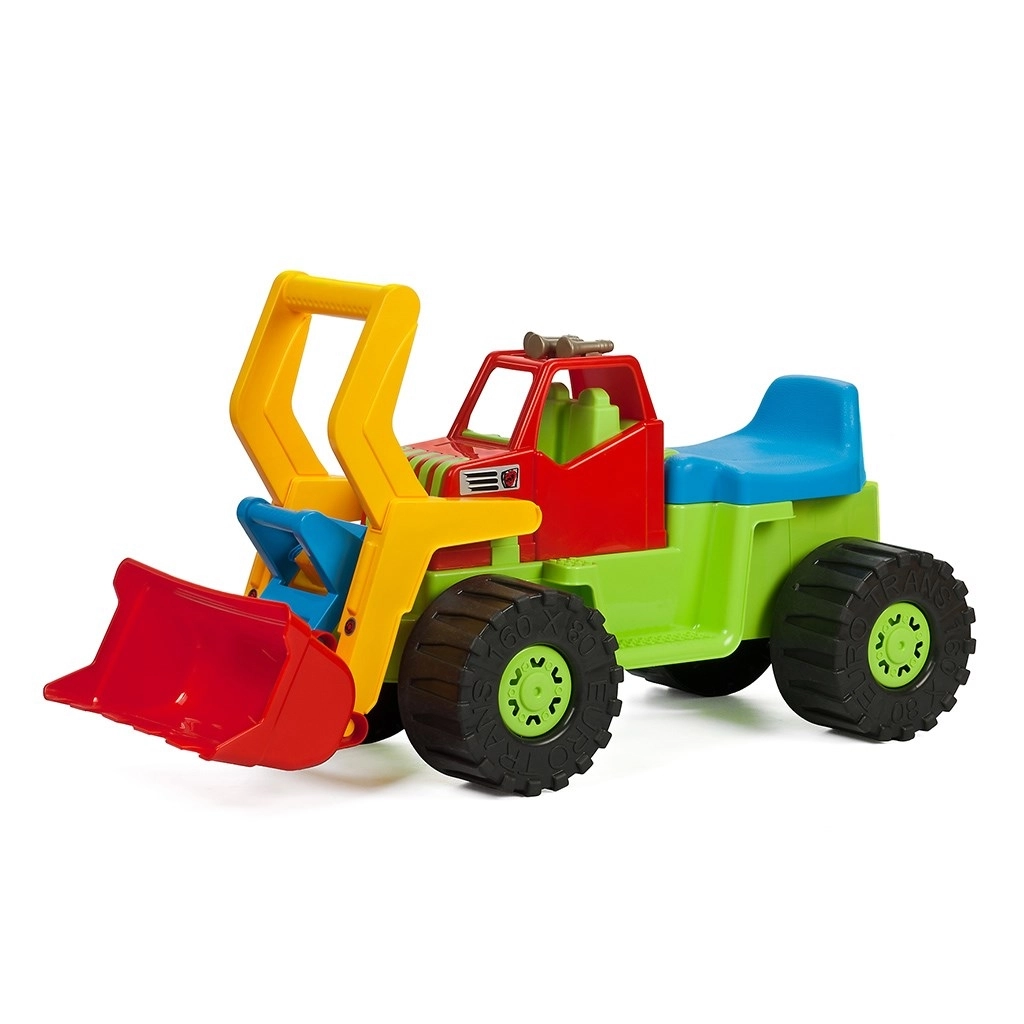 Kinderen kunnen de laadbak mechanisch heffen en kiepen, zand of speelgoed scheppen en spelen als kleine bouwers.