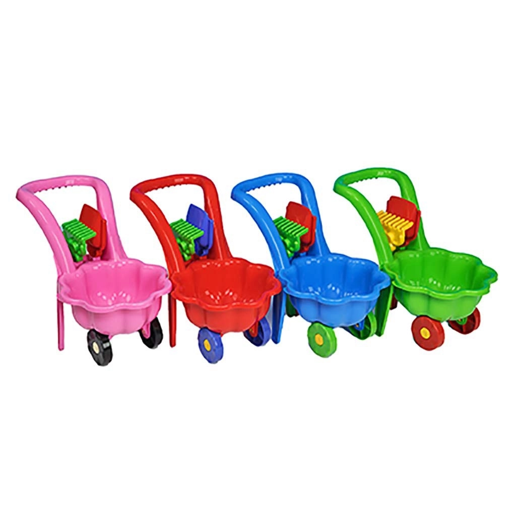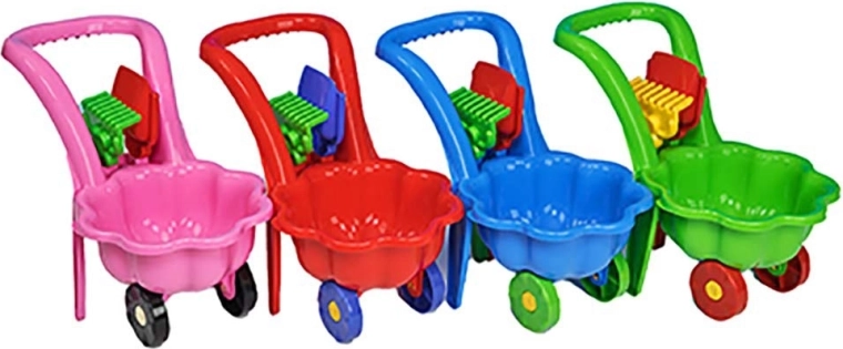 - Compleet uitgerust – kruiwagen, schep en hark in bijpassend design.